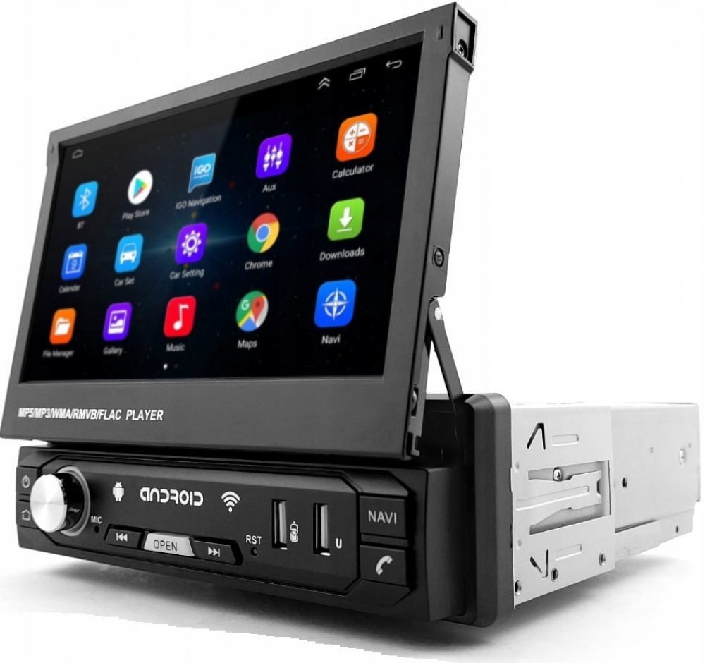 Při běžném používání zůstává displej rádia skrytý – přijímač zabírá stejně místa jako klasické 1-DIN rádio, ale stačí stisknout tlačítko OPEN a vysunout multimediální dotykový panel, který umožňuje přístup ke všem funkcím zařízení.