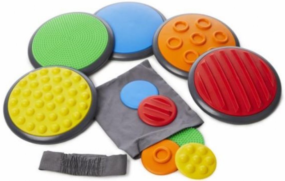 Jedná se o nezbytnou pomůcku pro správný vývoj hrubé motoriky, balanční rovnováhy a smyslů. V balení najdete disky větších a menších rozměrů vždy do páru podle povrchové struktury. Můžete hrát třeba jako obří pexeso pomocí nohou či rukou a klidně poslepu. Cílem je najít do páru disk se stejnou tvarovou strukturou na povrchu. Možností her je spoustu a Vy si vždy můžete vybrat a přizpůsobit podle věku dítěte. Disky jsou vždy po ruce, snadno se zaklízejí a vyklízejí pomocí přiloženého pytle.