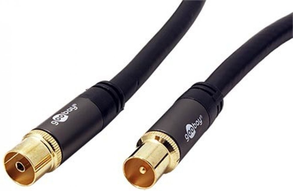 Velmi kvalitní anténní kabel pro TV a rozhlas.; Použití: Propojení anténního vstupu na zařízení k účastnické zásuvce nebo prodloužení anténního kabelu.; Konektory: PAL(M) - PAL(F), zlacené kontakty; Kabel: Koaxiální kabel s impedancí 75ohm, bezkyslíkatá měď 99,99% , čtyřnásobné stínění, s ferity. - Vnější izolace: PVC průměr 7,5mm - Stínění: 4x stíněný - 2x opletení(128 x Al) prokládané 2x hliníko...