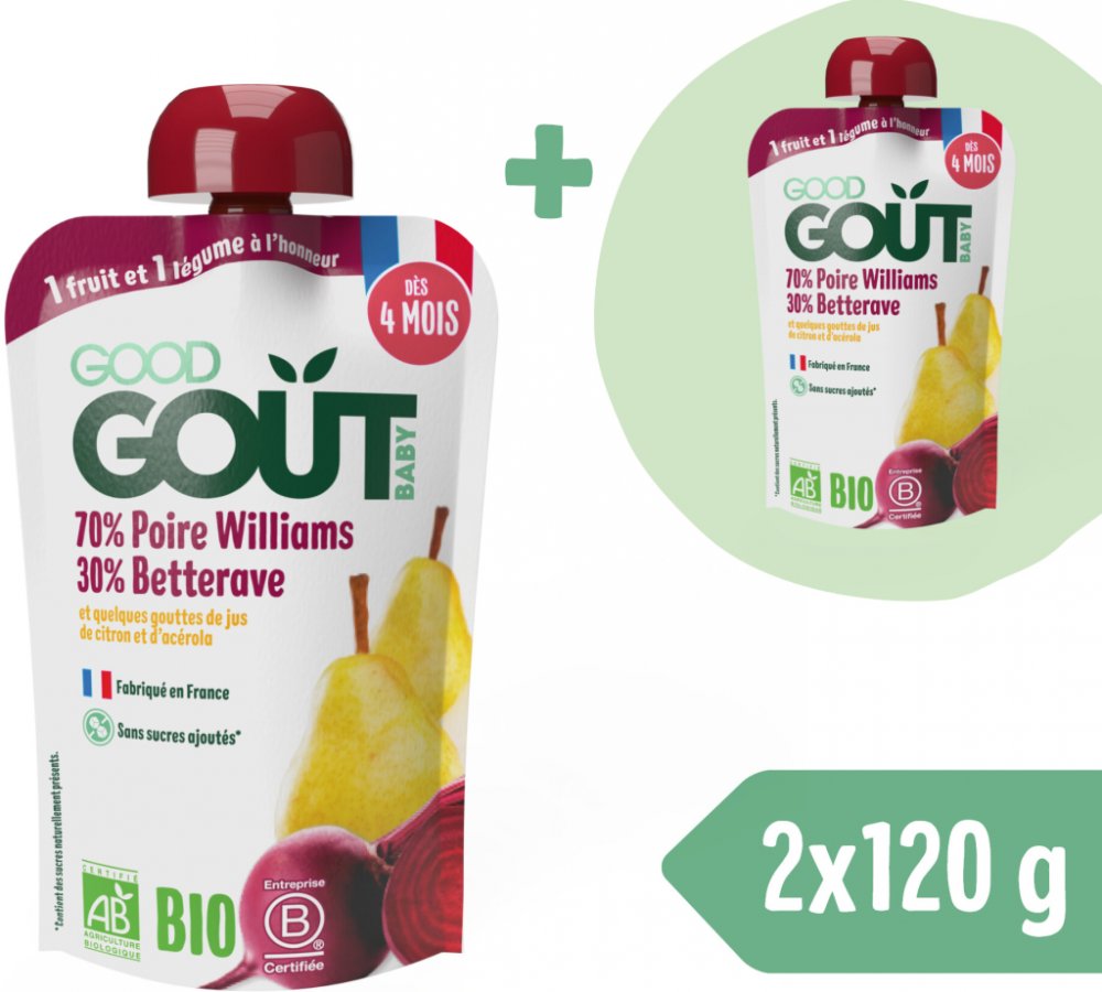 Představujeme vám novou kapsičku, která obsahuje 70 % bio hrušky Williams a 30 % bio červené řepy s pár kapkami šťávy z citronu a aceroly. Také se nemůžete dočkat, až ji se svým miminkem vyzkoušíte?