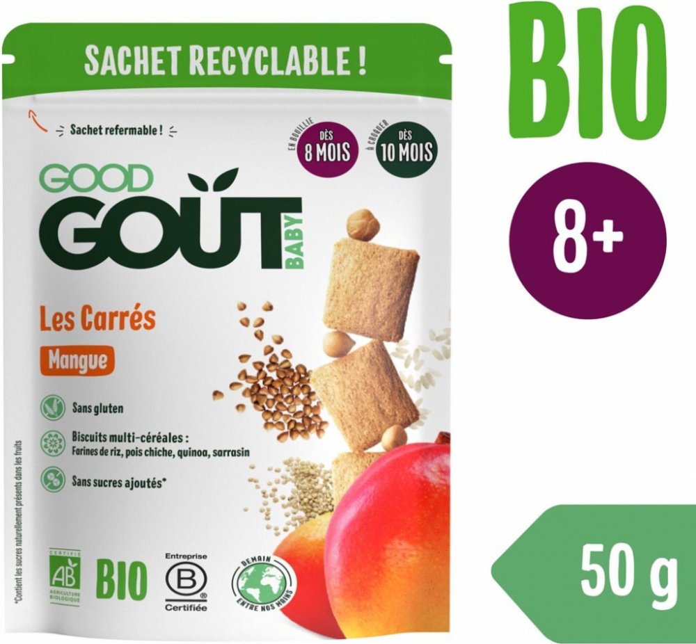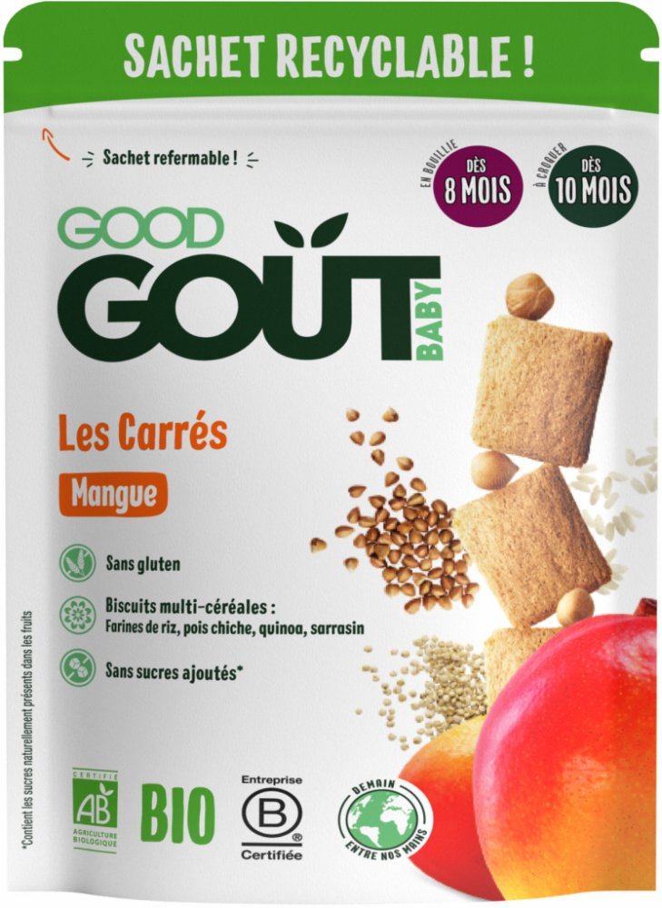 Složení: 65 % bio rýžová mouka, 10 % bio cizrnová mouka, 7,5 % bio sušené plnotučné MLÉKO, 6 % bio mangový prášek, 5 % bio quinoová mouka, 5 % bio pohanková mouka, přírodní aroma, vitamín B1. Bezlepkové. Obsahuje laktózu. Alergeny jsou označeny VELKÝM PÍSMEM.