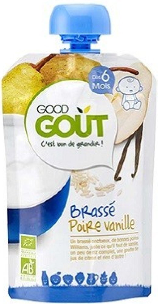 Složení: 50 procent bio fermentované MLÉKO, 34 procent bio hrušky Williams, voda, 3,5 procent bio celozrnná rýžová mouka, 1,9 procent bio vanilkový extrakt, koncentrát šťávy z bio citronů. Bez lepku. Obsahuje laktózu.
