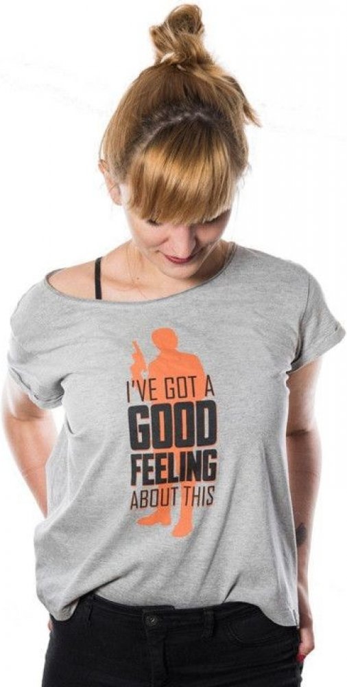 Trochu modifikovaná známá hláška z Hvězdných válek na krásném tričku pro dny, kdy máte dobrý pocit.