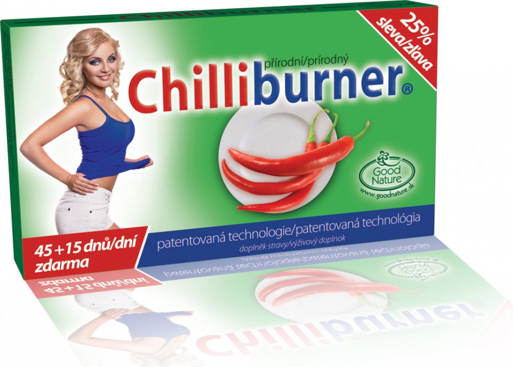 Chilliburner je přírodní přípravek z chilli papriček určený pro kontrolu váhy. Obsahuje vysoce koncentrovaný přírodní výtažek chilli papriček - kapsaicin - zpracovaný patentovanou technologií do mikrokapslí, kde účinná složka poskytuje uživateli maximální efekt kapsaicinu bez podráždění úst a trávicího traktu.