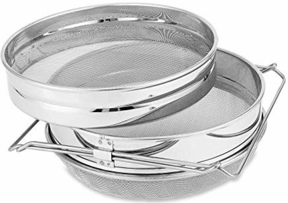Velký nerezový cedník z nerezové oceli. Dvojité síto pro dokonalé vycezení medu. Průměr cedníku je 24cm. Pro nasazení na libovolnou nádobu slouží posuvné úchyty, které jsou vhodné pro nádoby do průměru 40cm.