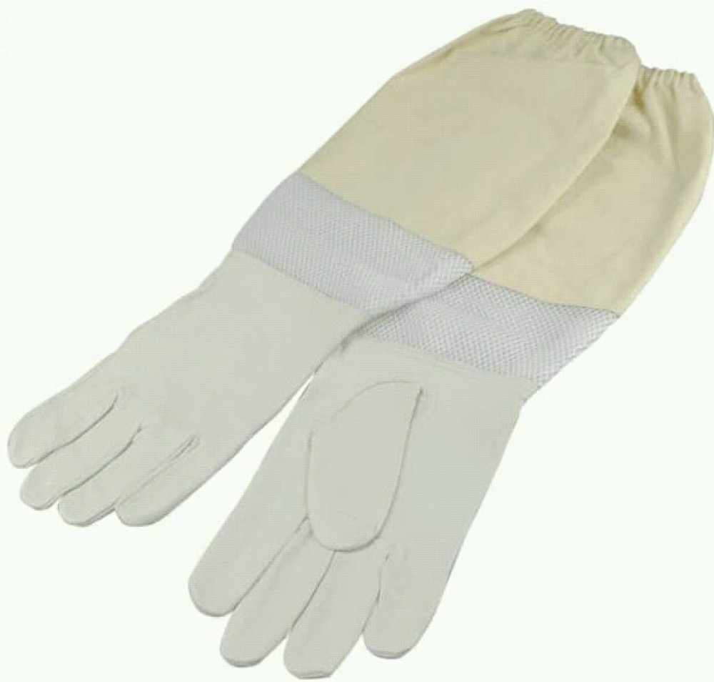 Kvalitní dětské dlouhé kožené včelařské rukavice. Rukavice z vepřovky s látkovou manžetou, velikost S.