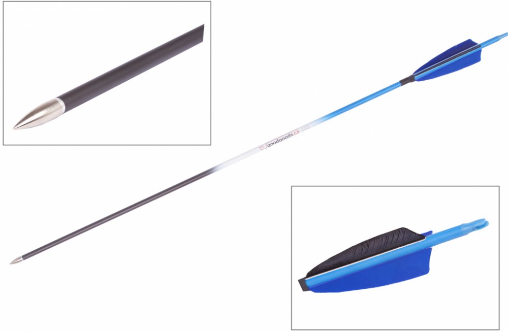 Kvalitní karbonový šíp do luku s výměnným hrotem délky 28" , spine 600, průměr šípu 7 mm. Letky z krocaního peří. Šíp výrazné barvy.