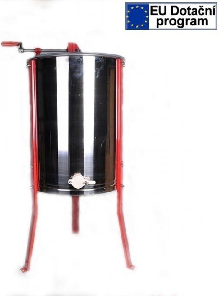 Jednoduchý nerezový medomet s ručním pohonem na čtyři rámky. Vhodný pro začínající i pokročilé včelaře, kteří nechtějí za něj utrácet mnoho peněz. Medomet má nerezové koše na rámky o maximální velikosti 45 cm x 25 cm..