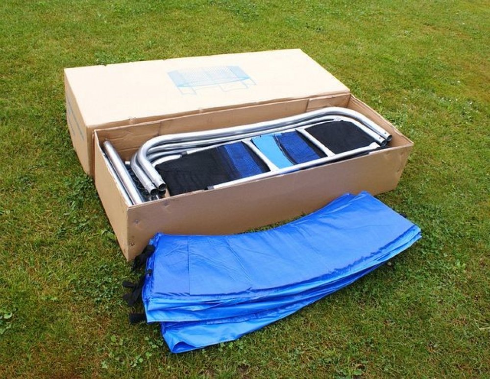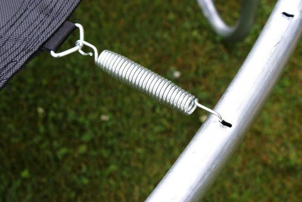 nohy trampolíny - tzv. "U" nohy: 4 ks, uvnitř a vně pozinkované 38 mm × 1,5 mm (silná konstrukce nohou trampolíny poskytuje dostatečnou stabilitu)