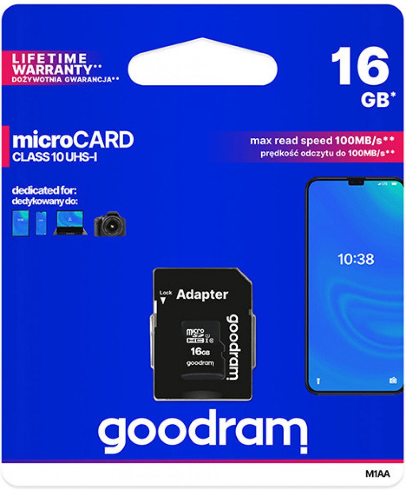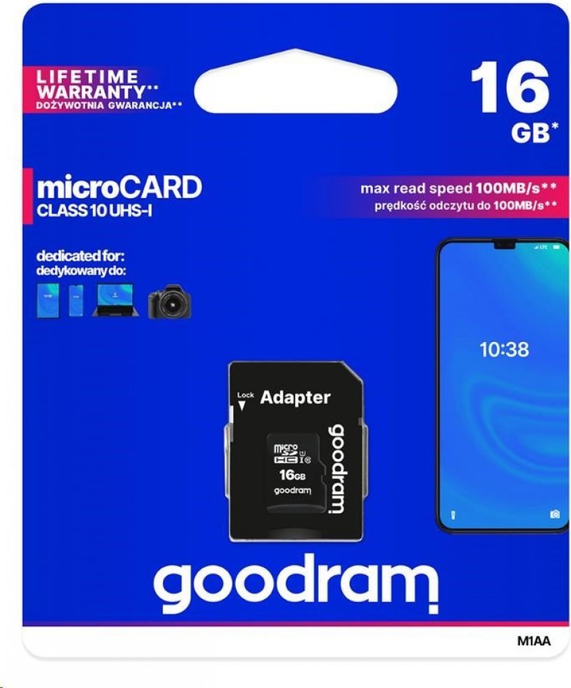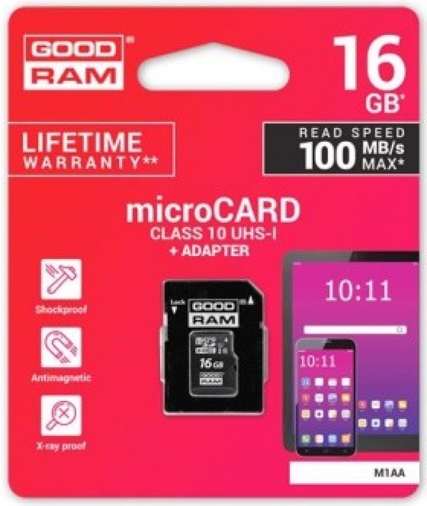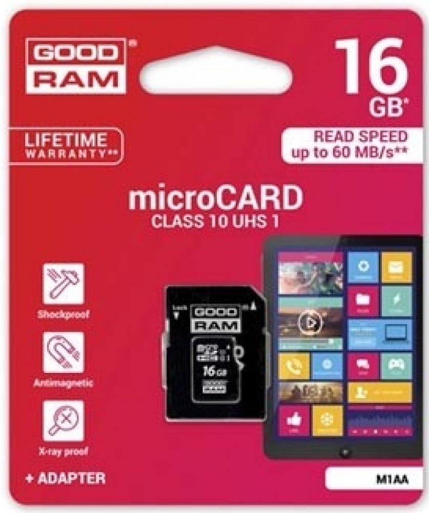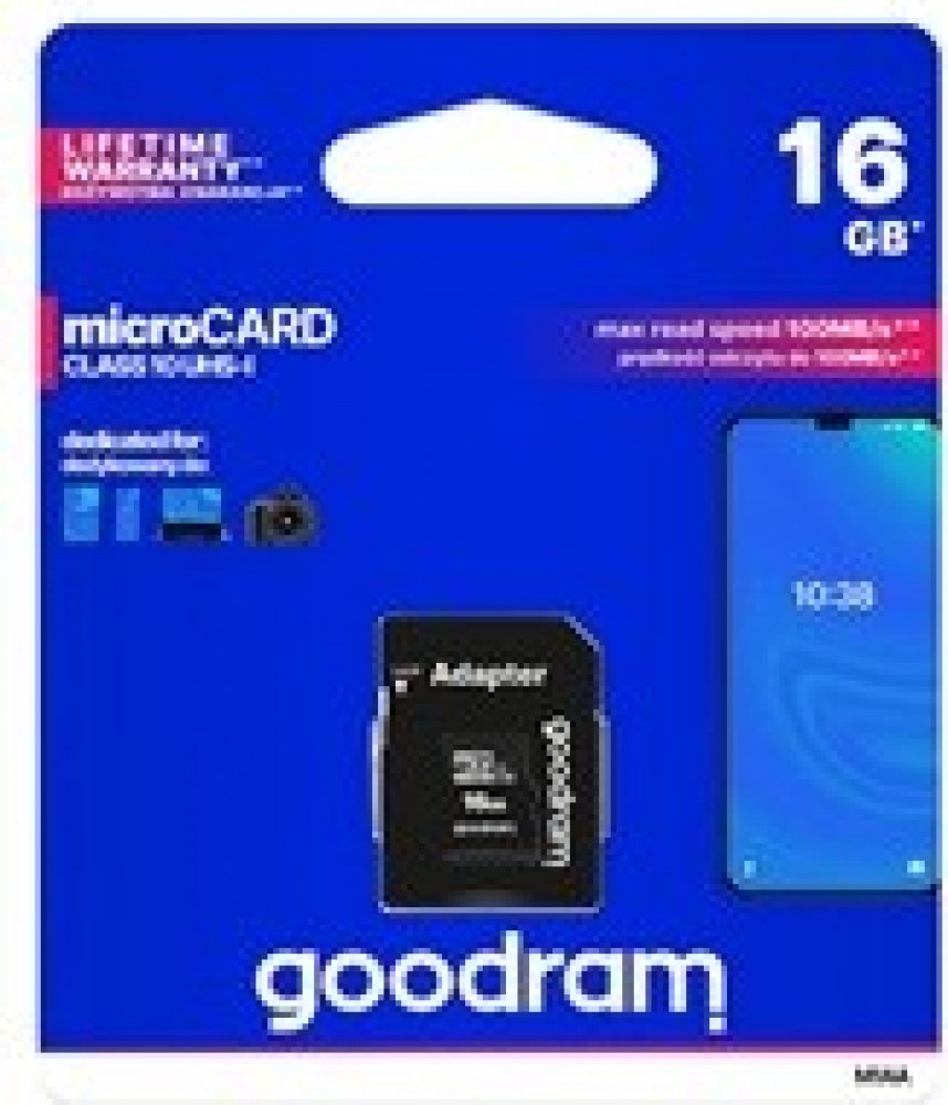 16 GB Goodram microSD 10 MB/s 10 MB/s Class 10 UHS-I U1