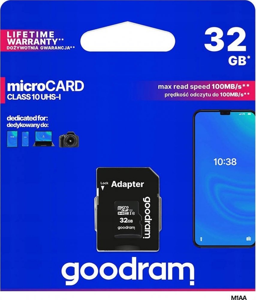 32 GB Goodram microSD 60 MB/s 10 MB/s Class 10 UHS-I U1