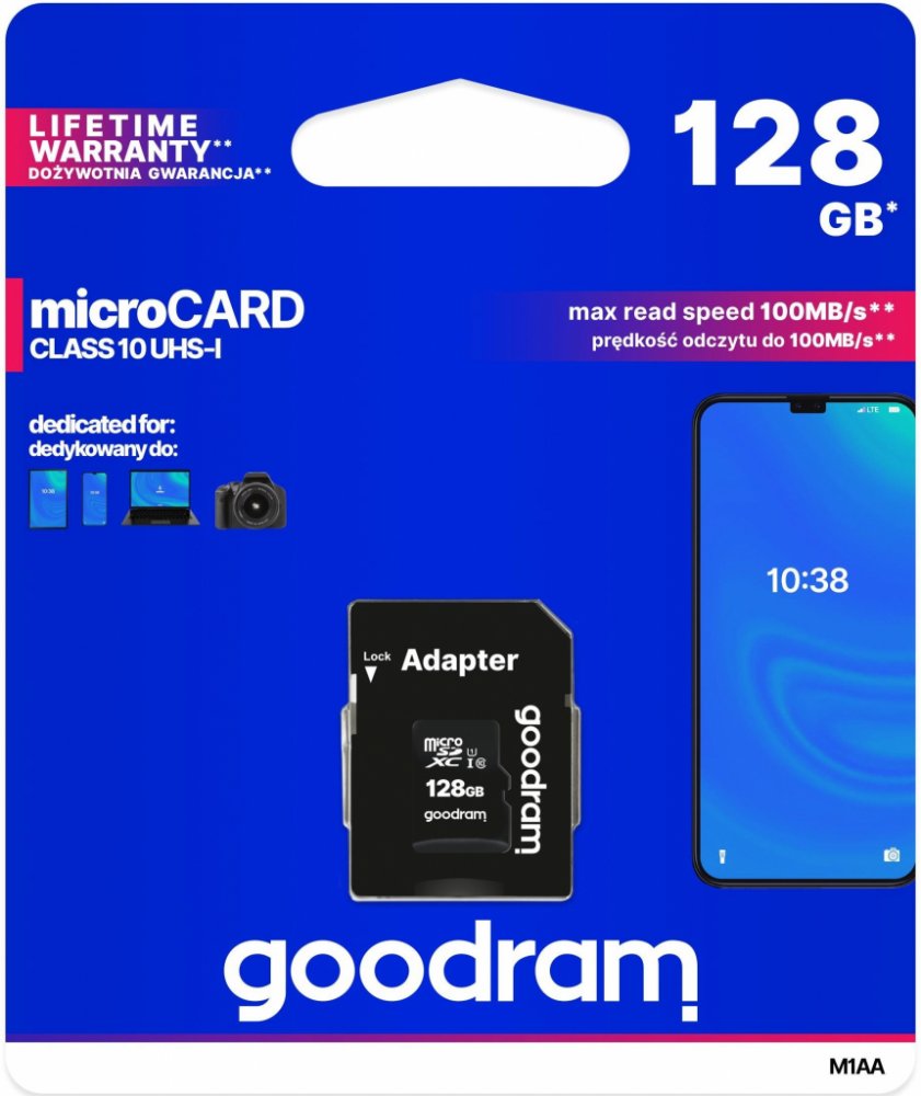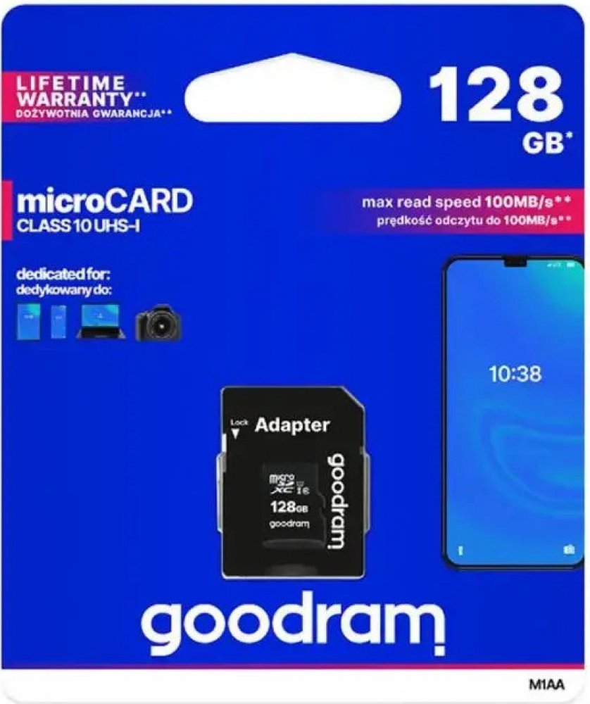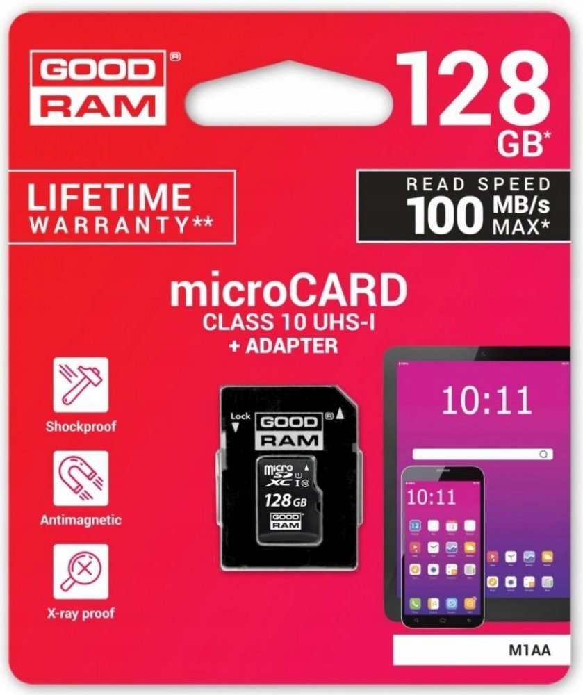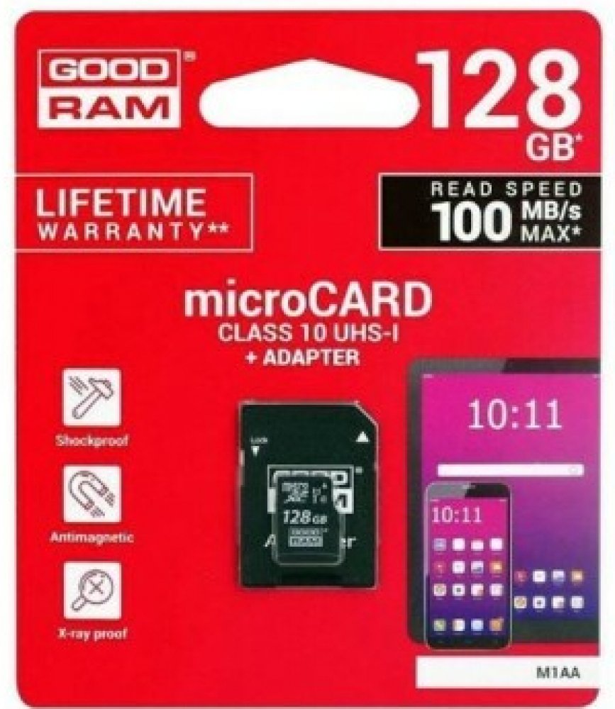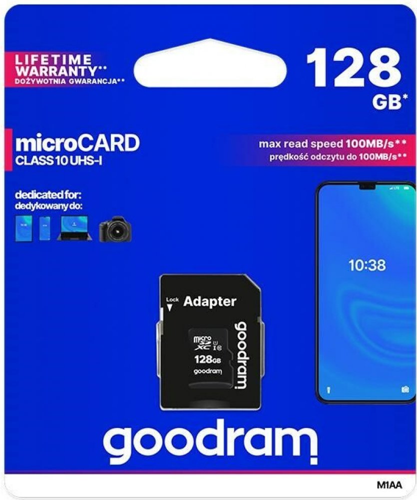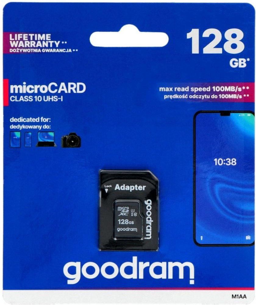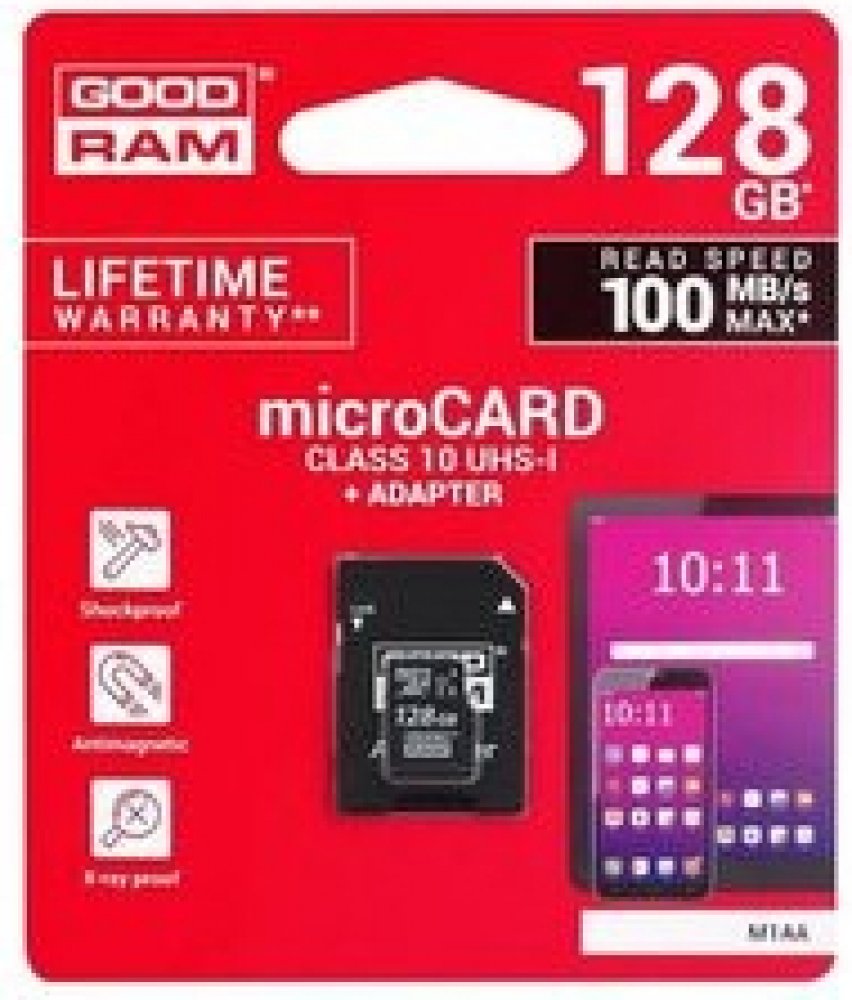 128 GB Goodram microSD 100 MB/s 10 MB/s Class 10 UHS-I U1