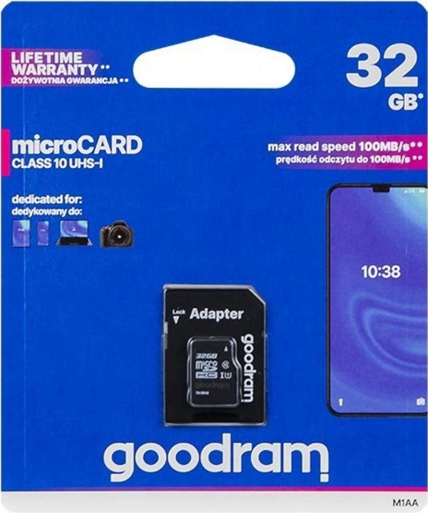 32 GB Goodram microSD 60 MB/s 10 MB/s Class 10 UHS-I U1