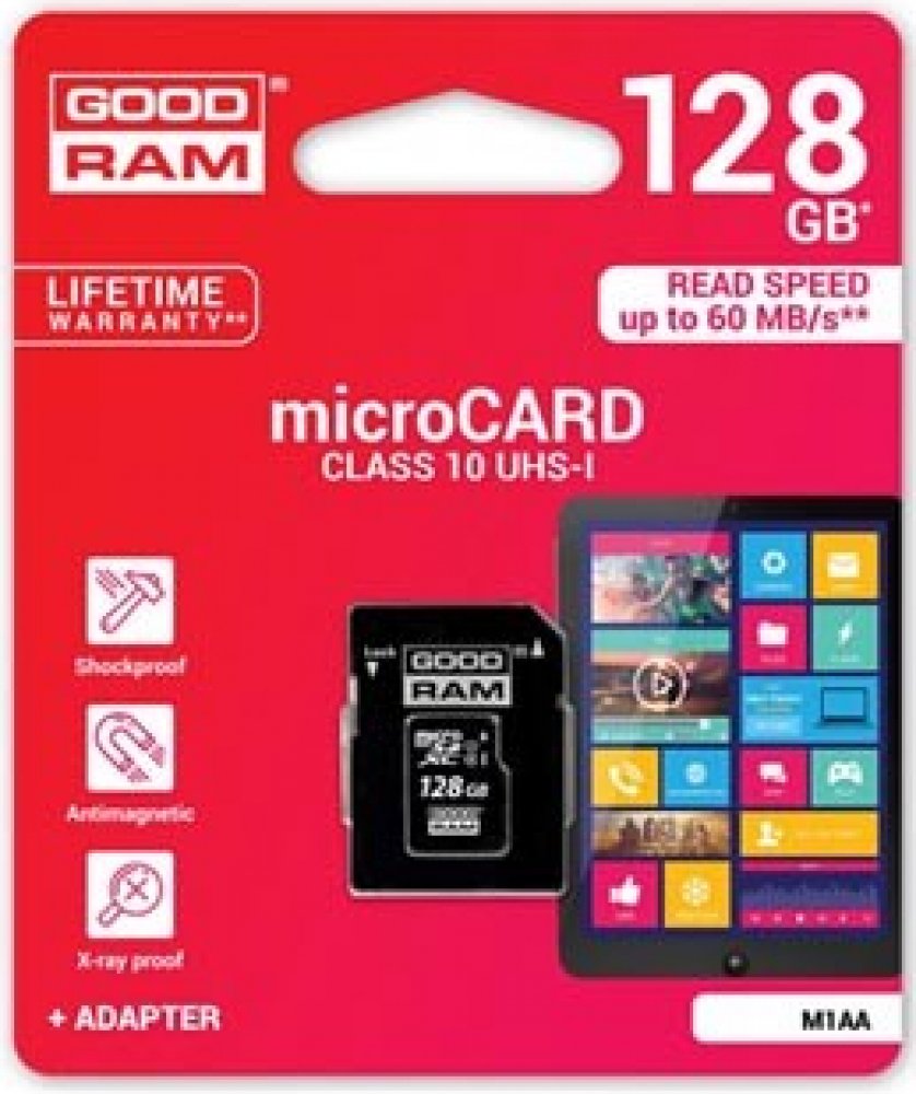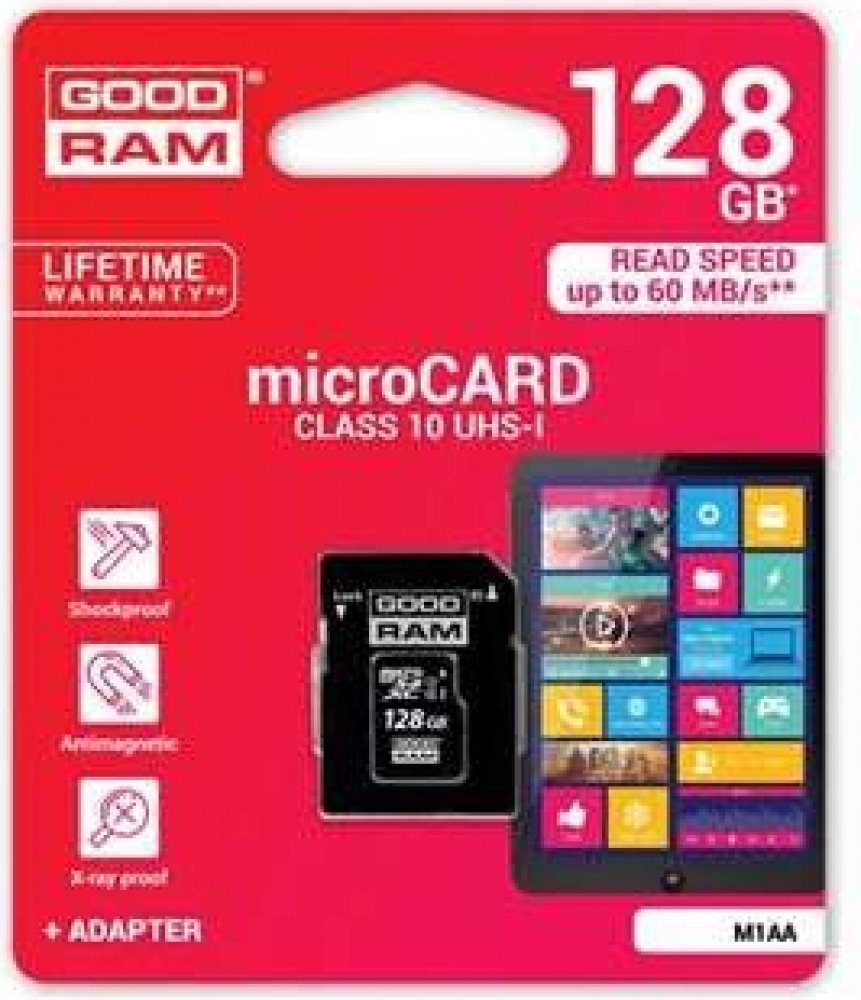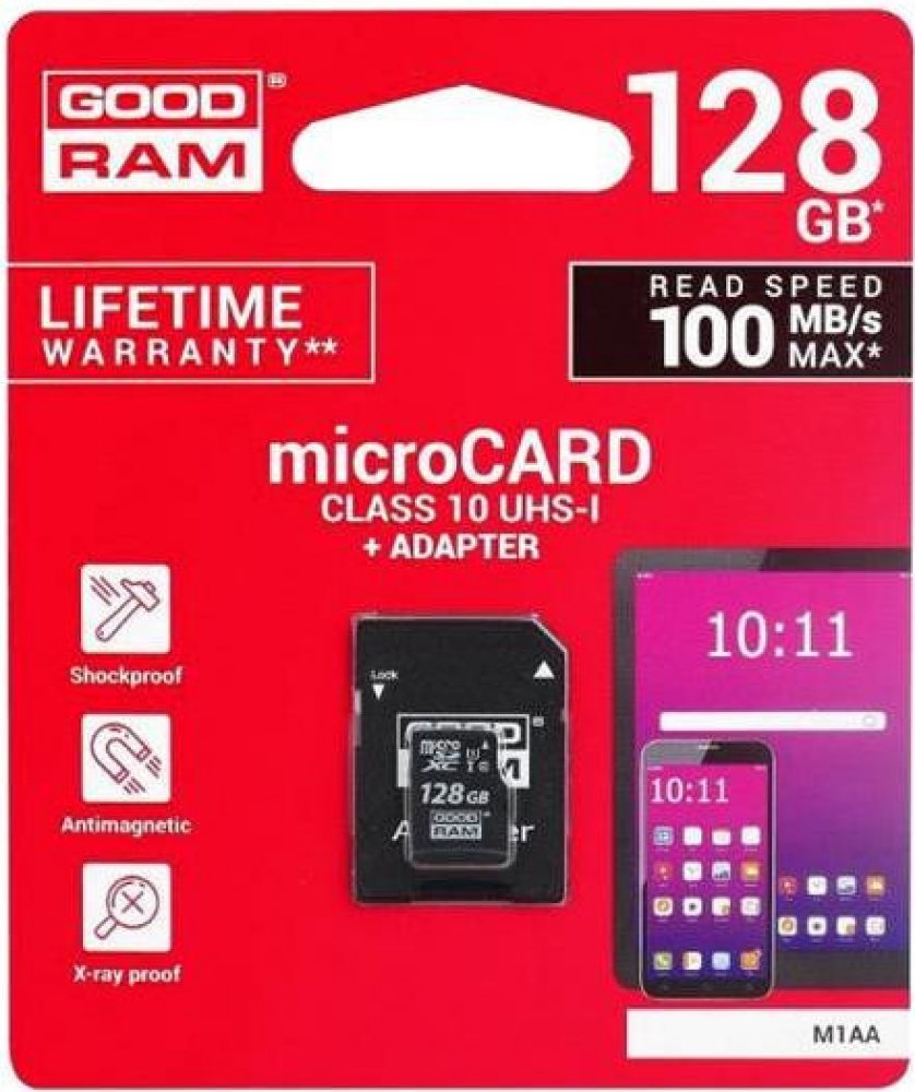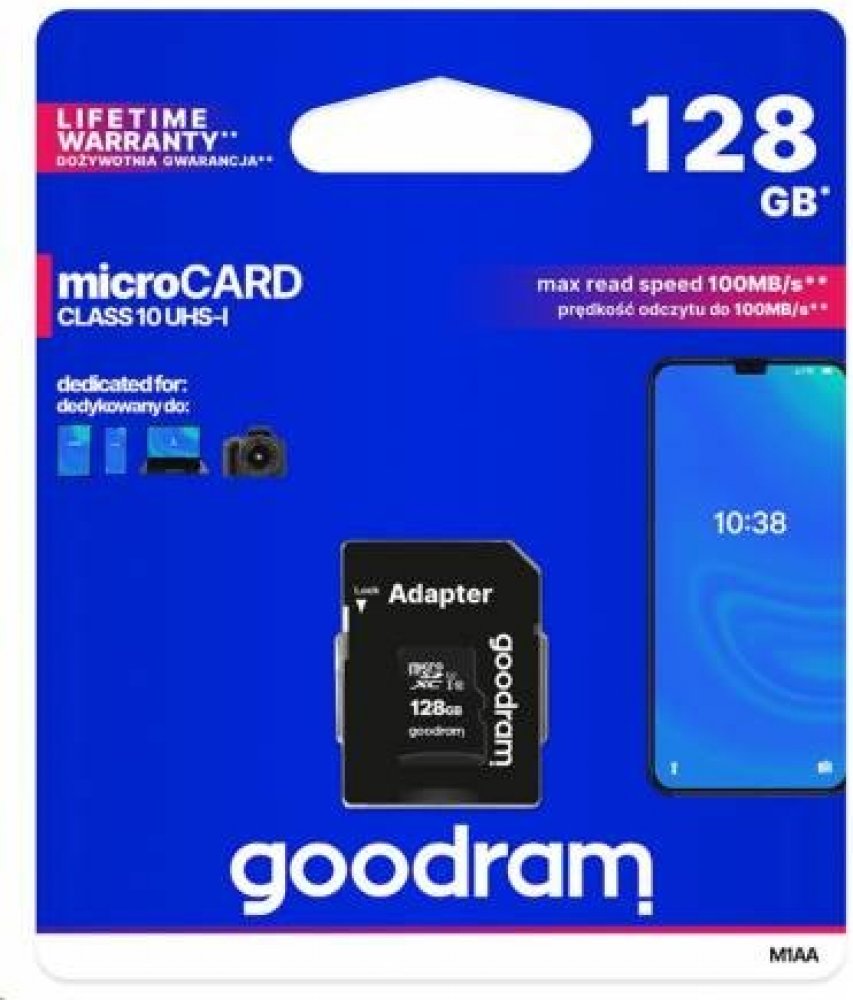128 GB Goodram microSD 100 MB/s 10 MB/s Class 10 UHS-I U1