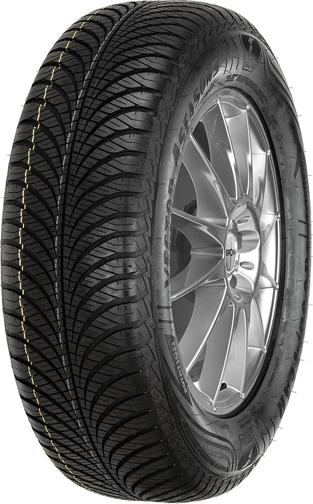 Goodyear Vector 4Seasons poskytuje optimální celoroční výkonnost. Její jedinečná technologieWeather Reactive dodává pneumatice schopnost přizpůsobit se podmínkám ročního období. Tato celoročnípneumatika je rovněž označena symbolem sněhové vločky; která udává; že pneumatika ofi ciálněsplňuje normy pro čistě zimní pneumatiky. Nová směs siliky pro všechny druhy počasí; nabízí vynikajícívýkonnost v létě i v zimě. 3D vaflové lamely zvyšují přilnavost na sněhu a ledu. SmartTRED aktivujerůzné části vzorku běhounu; aby odpovídaly různému počasí a podmínkám vozovky. Běhoun ve tvaru Vodvádí vodu a rozbředlý sníh; aby tak zajistil odolnost proti aquaplaningu.Nejdůležitější vlastnosti a charakteristiky:- celoroční výkonnost díky technologii Weather Reactive- odolná proti aquaplaningu- přizpůsobí se podmínkám na povrchu vozovky díky specifi ckým částem běhounu.