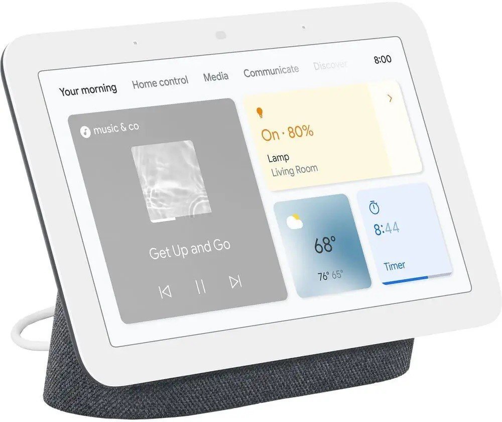 Vylepšený reproduktor poskytuje o 50 % více basů než původní Nest Hub. Vytvářejte skupiny s dalšími reproduktory, a displeji Nest, pro skvělý zvuk v každé místnosti.