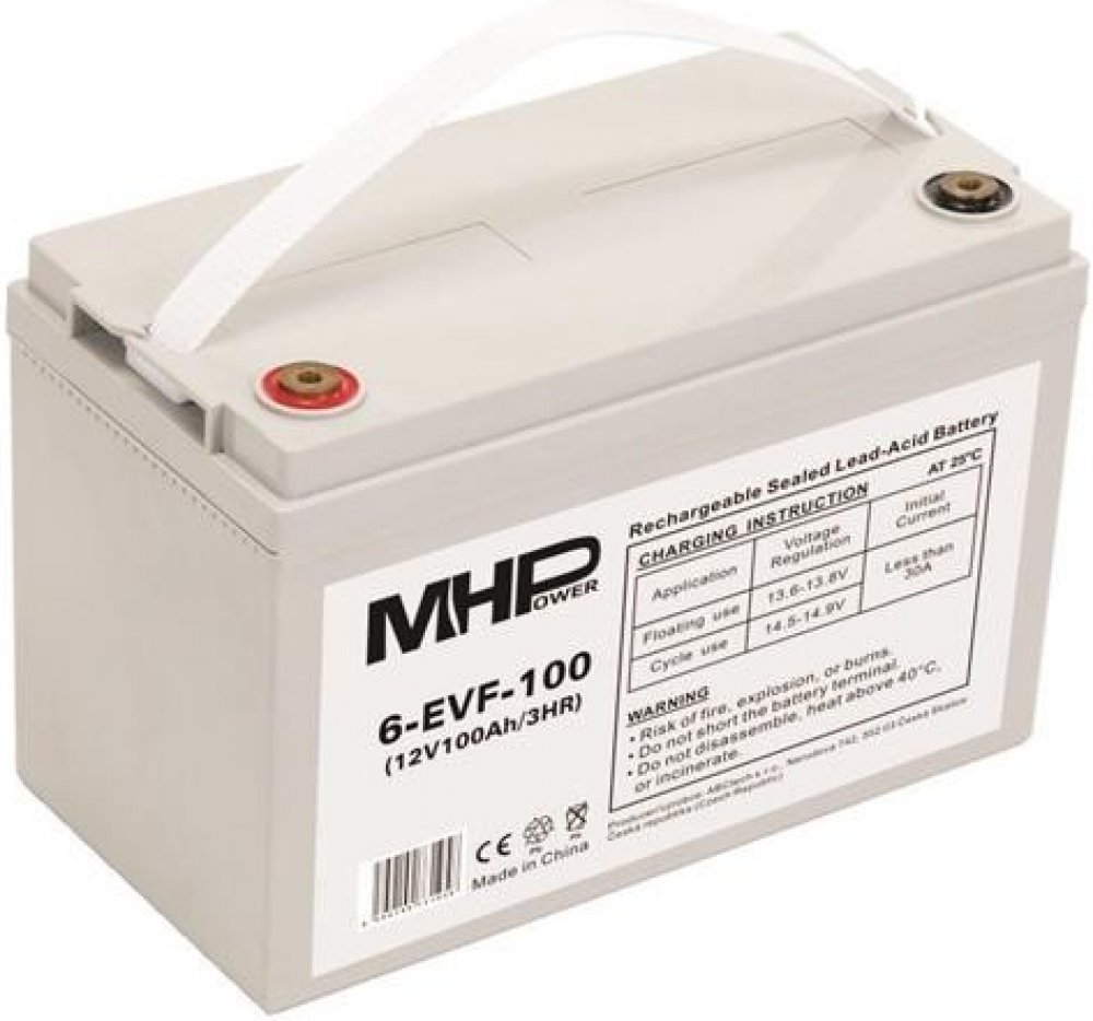 Záložní 12 V, 100 Ah olověný akumulátor v provedení VRLA (GEL) vhodný pro aplikace, kde dochází k častému a hlubokému vybíjení / cyklování, tedy hlavně pro pohony elektromotorů.