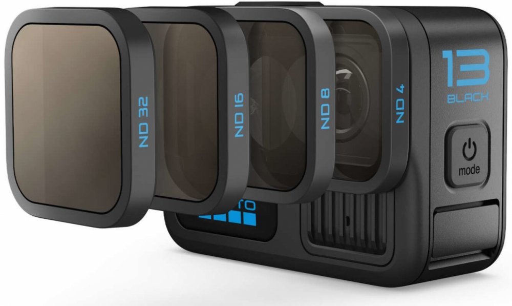 - Kamera HERO13 Black automaticky rozpoznává každý namontovaný filtr a usnadňuje jejich výběr tím, že doporučí ideální filtr pro pořízení záběru podle osvětlení