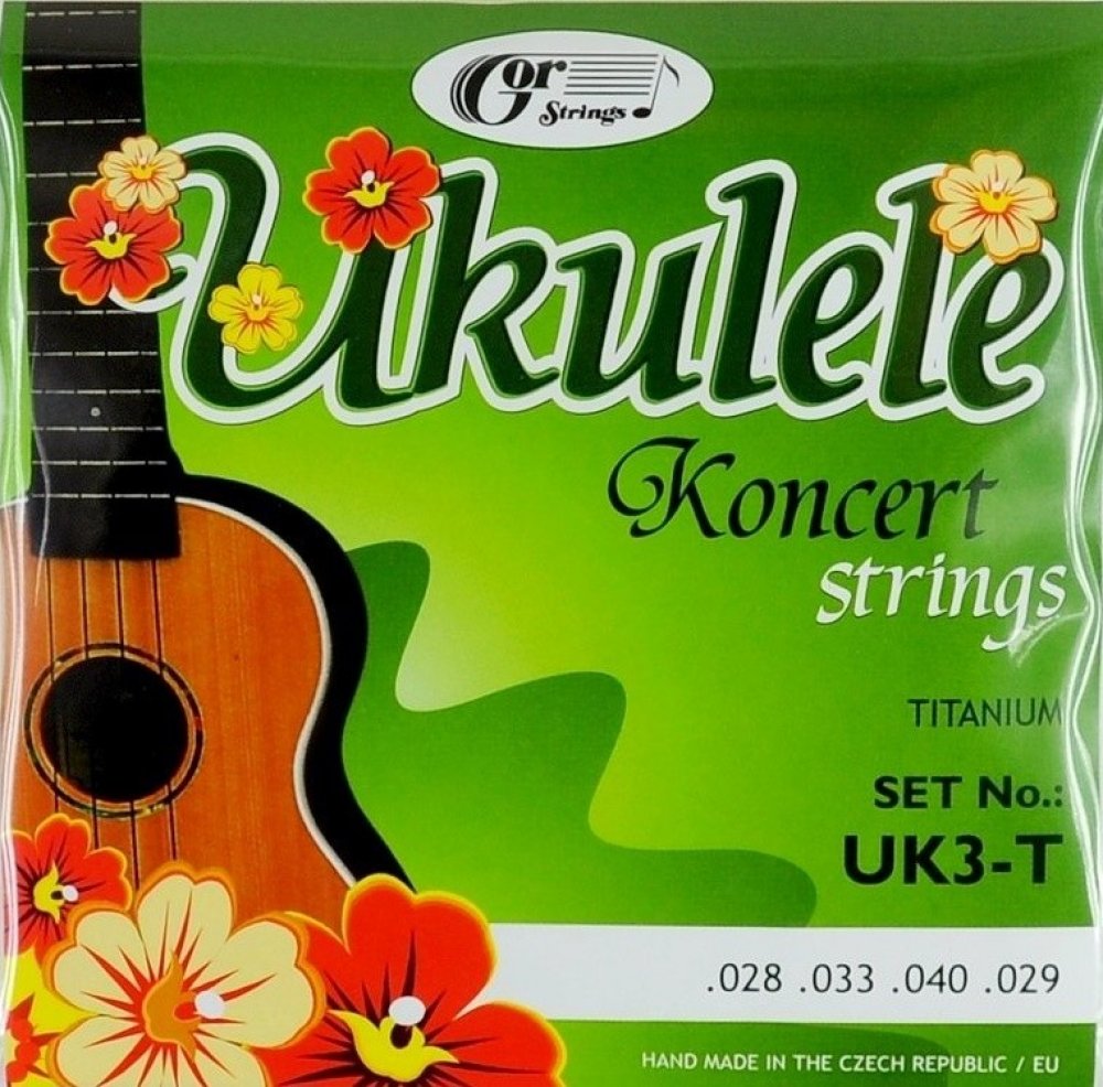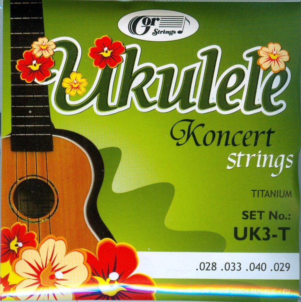 Gorstrings UK3-T Titanium jsou struny pro koncertní ukulele. Tyto struny jsou v provedení Titanium o tloušťce: .029, .040, .033, .028. Doporučené ladění C (G C E A). Délka strun je 750 mm. Akční menzura 350 - 400 mm. Struny Gorstrings jsou vyrobené v České republice a jsou ideální volbou pro amatéry i profesionály za velice dostupnou cenu.Parametry:• Gorstrings UK3-T Titanium