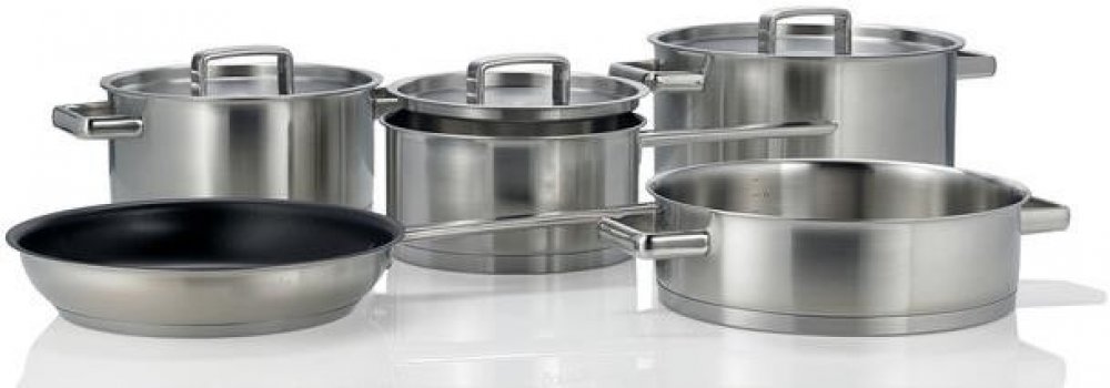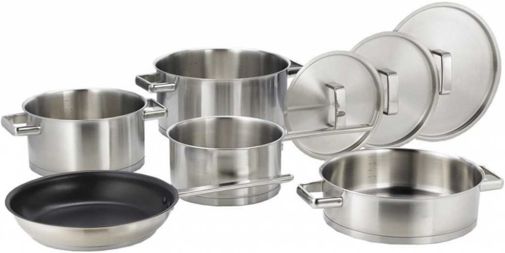 Nerezová sada nádobí je složená z 5 kusů, vhodné pro použití na indukční a sklokeramické desky.Vhodné do pečících trub.