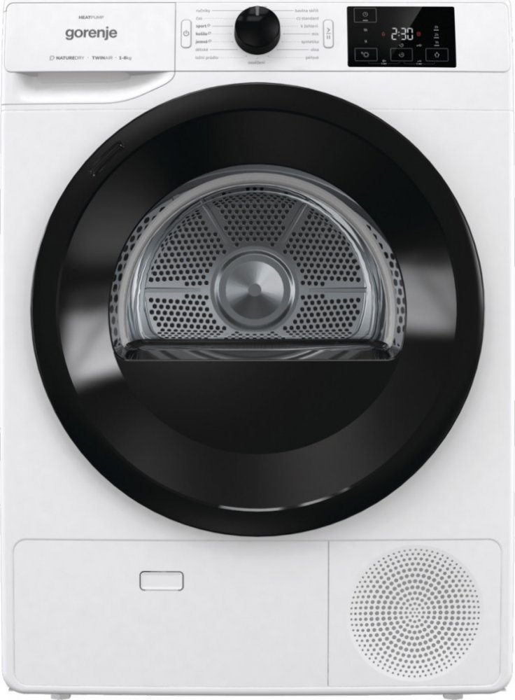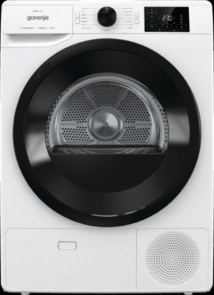 Gorenje volně stojící kondenzační 8 kg A pro 3–4 osoby s odvodem do odpadu vhodné do bytu (62–65 dB) 65 dB 176 kWh A otočný knoflík s dotykovým ovládáním 85 cm 60 cm 62.5 cm 48.3 kg 16