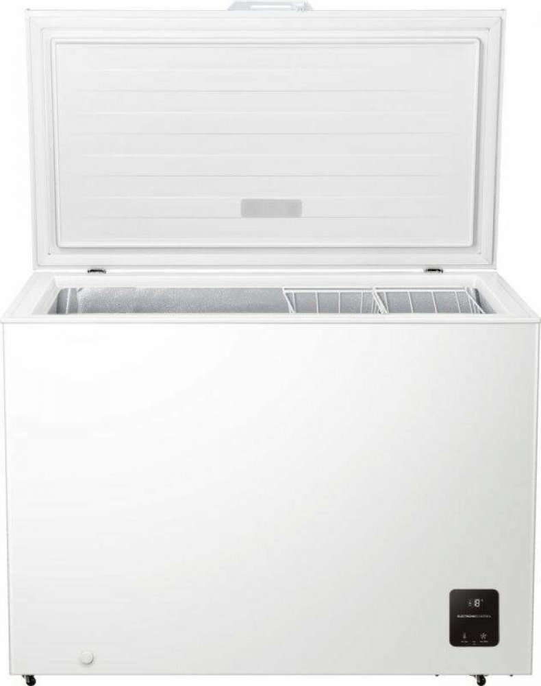Gorenje FH30EAW je bílá truhlicová mraznička s vnitřním objemem 297 litrů. Dokáže zmrazit až 16 kg potravin za 24 hodin a v případě výpadku proudu udržet suroviny v chladu po dobu až 40 hodin. Odmrazování je prováděno ručně. Osvětlení je umístěno na stropě dveří a vnitřní vybavení zahrnuje 2 závěsné kovové koše. Díky velkému objemu poskytuje dostatek prostoru p...