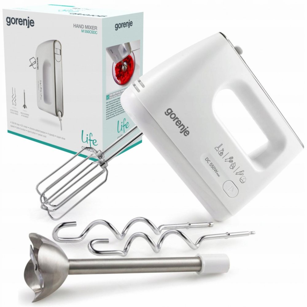 Ruční mixéry, příkon 550W, 5 rychlostí, DC motor, Turbo funkce, 2x hnětací hák, 2x šlehací metla1, 1x nerezová mixovací noha.