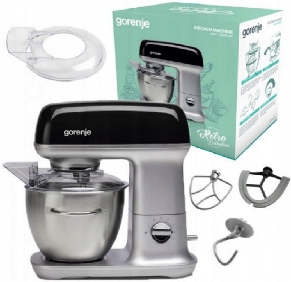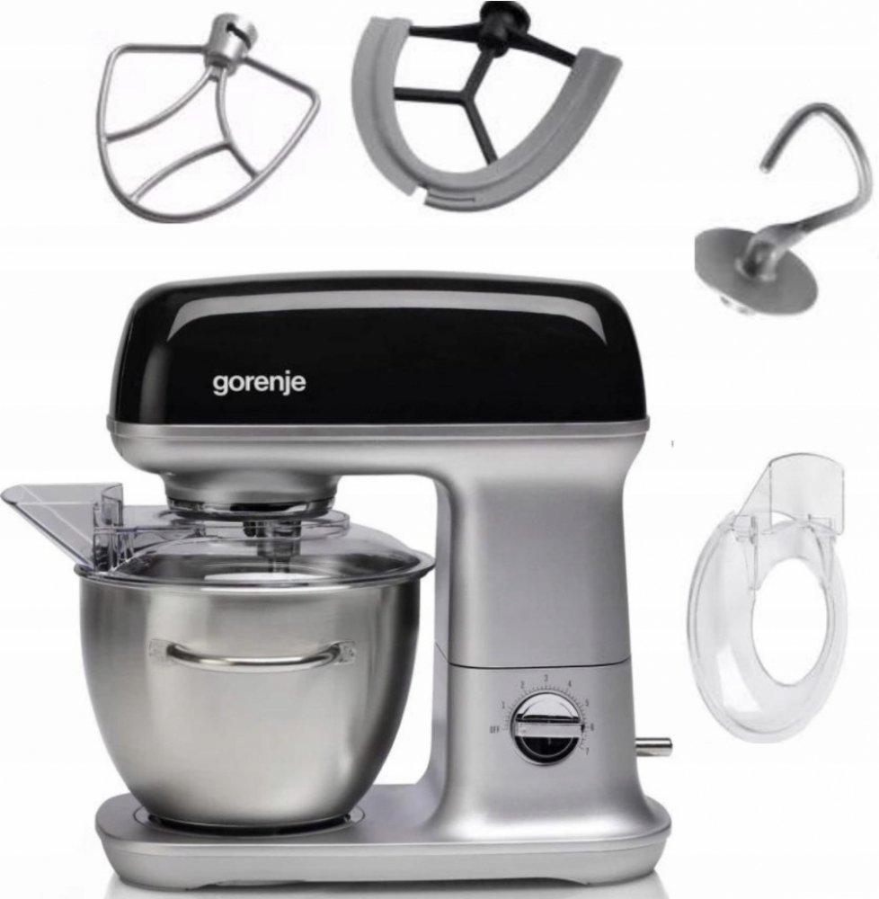 Gorenje 4.5 l 1000 W 7 mechanické kuchyňské roboty nerezové černé převodový pro domácí pekaře nerezová ocel rozšířená sada standardně velké 1.1 m 9.1 kg 37.2 x 36 x 27 cm kovové