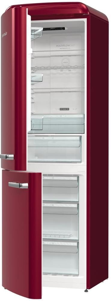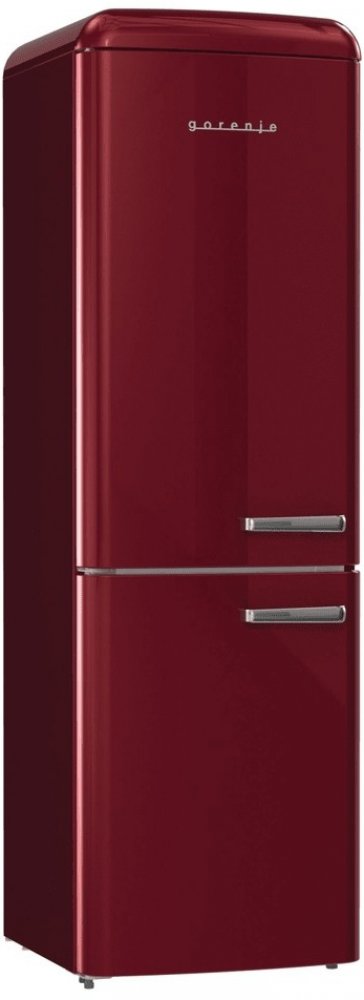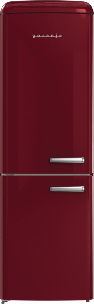 - Volně stojící kombinovaná chladnička v retro designu v provedení bordó