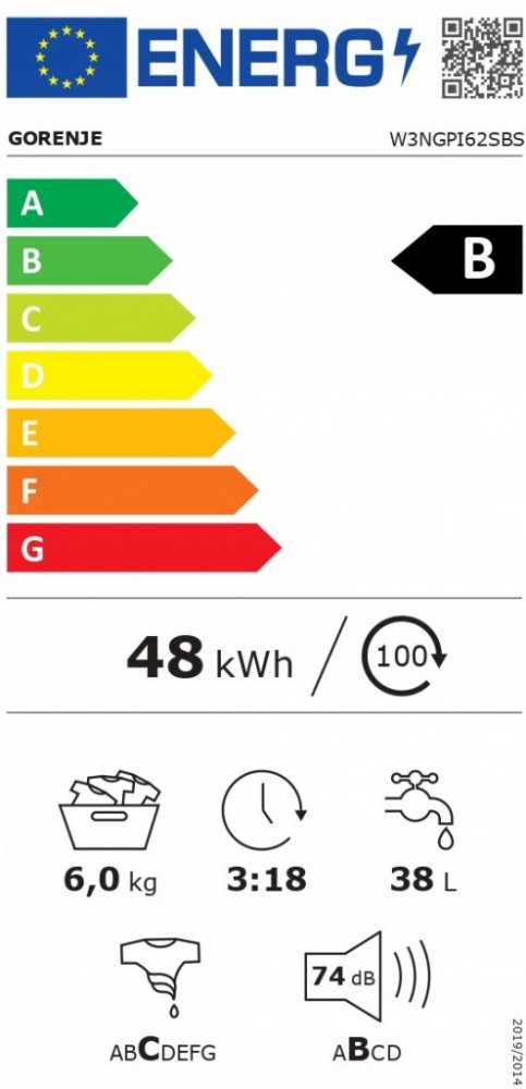 Pračka Gorenje W3NGPI62SBS spadá do energetické třídy B a spotřebuje 48 kWh/100 pracích cyklů. Její invertorový motor PowerDrive je velmi účinný, výkonný a úsporný. Díky tomu vám pračka ušetří nemalé výdaje za energie a vám zůstane více financí na radosti.