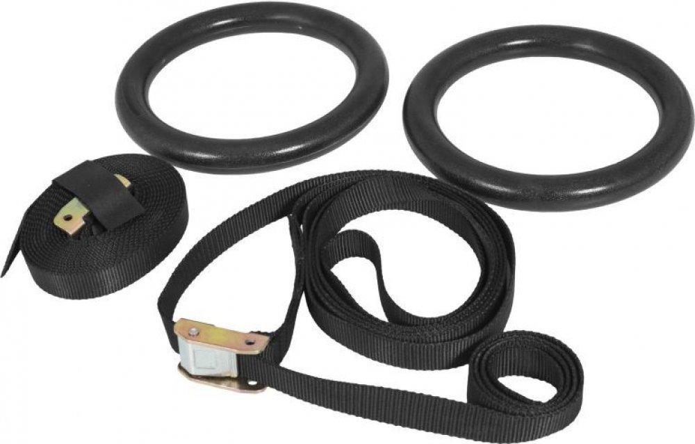 Dva robustní pásy s rychloupínáky slouží jako odpružení a jejich montáž je tak snadná, že můžete ihned začít. Pásy jsou absolutně odolné proti roztržení a vydrží až 200 kilogramů, což umožňuje obrovskou škálu cvičení. Cviky na nohy mají s kruhy také zcela nový rozměr a ukáží vám, jak jste na tom s kondicí. Díky pružnosti kruhů tělo při cvičení stále balancuje a vy tak procvičujete jádro těla i zád...
