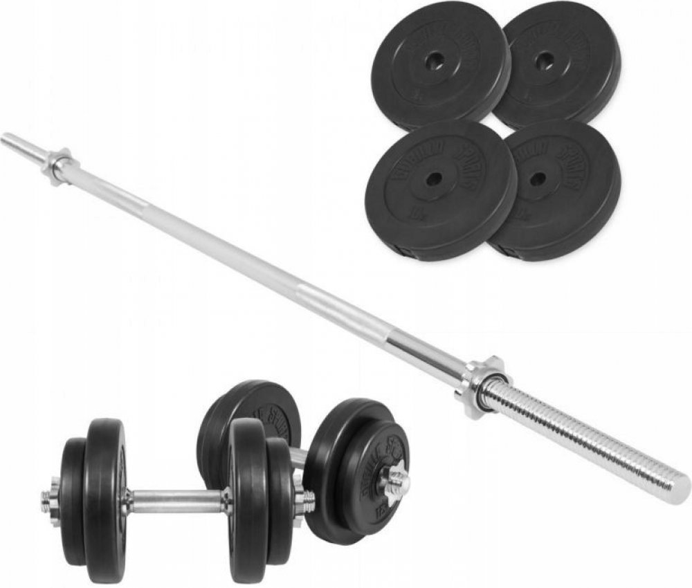 Chystáte se založit profesionální studio, či domácí posilovnu? Činky jsou nepostradatelným základním vybavením. Sada obsahuje mnoho různých kotoučů a několik činkových tyčí. Kotouče si nasadíte podle potřeby a můžete hned začít s tréninkem. Kotouče jsou potaženy odolným plastem, který chrání podlahu a snižuje hluk při manipulaci. Technické údaje: povrch kotouče: plast vhodné pro tyče o průměru 30 ...