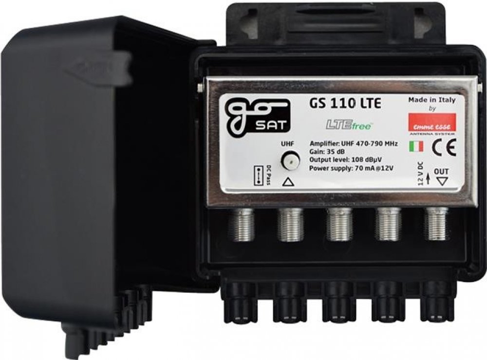 Zesilovač GoSAT se zabudovaným LTE filtrem byl navržen aby splňoval všechny požadavky na příjem digitálního televizního signálu v souladu s platnými směrnicemi CE. Kovová struktura SMD komponenty a konektory F zaručují vysokou úroveň provedení nabízí dobrou linearitu na celém zesíleném pásmu a vynikající poměr signál / šum. Dobrá výstupní úroveň zaručí kvalitní distribuci signálu. Plastové pouzdro odolné proti povětrnostním vlivům je navrženo pro rychlé připojení kabelů. Zesilovače mají volitelné průchozí napájení pro vybrané výstupy.