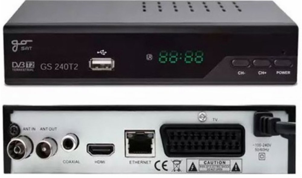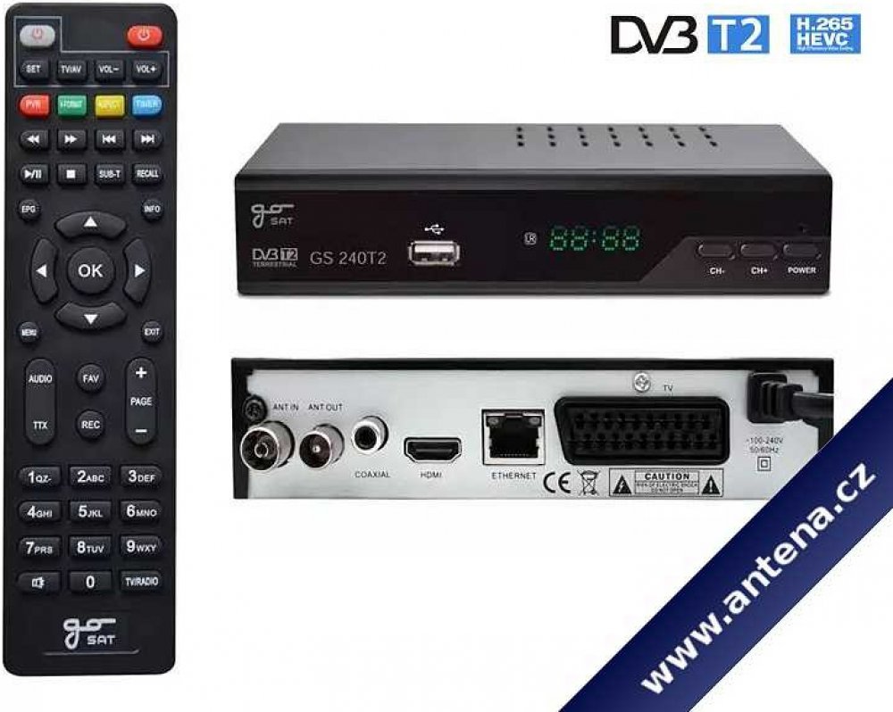 10.8 cm 16.8 cm 3.6 cm 0.4 kg 1 x 1 HDMI GoSat DVB-T2 H.265/HEVC a H.264 AVC
