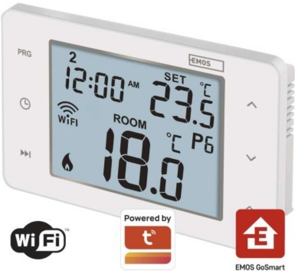 S chytrým termostatem P56201 z řady EMOS GoSmart je to snadné. Regulace topení či klimatizace na základě vaší GPS polohy, nastavení teplotních scénářů pro konkrétní den i čas a ovládání všech nastavení odkudkoliv pomocí aplikace, to je jen krátký výčet pokročilých funkcí, kterými tento termostat disponuje.