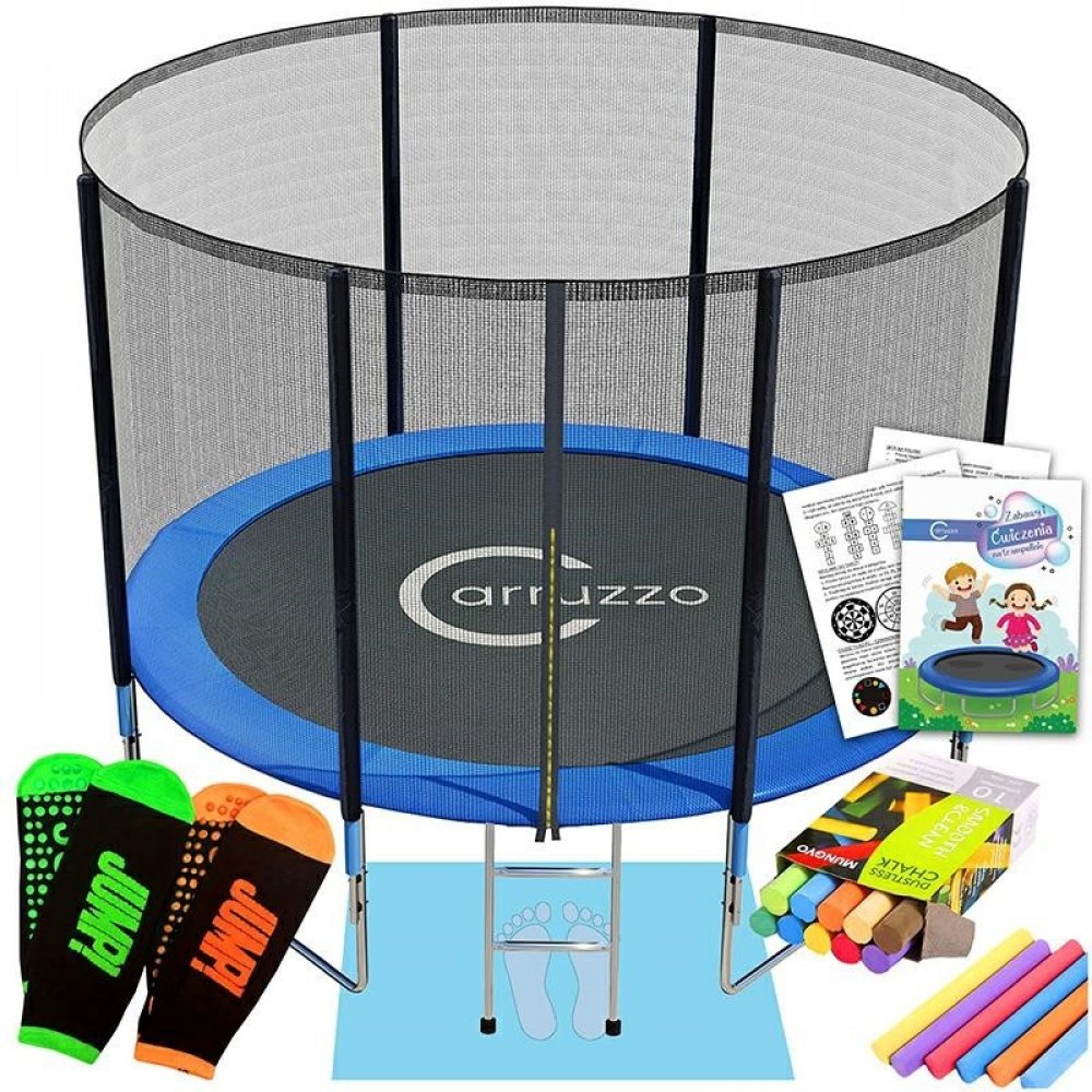 Trampolína vyrobená z pružného polypropylenu a tepelně vázaného uhlíku. Ocelová konstrukce odolná proti deformaci a nosnosti. Pozinkované pružiny jsou potaženy speciálním materiálem tlumícím nárazy podšitým houbou, který zajišťuje bezpečnost a zabraňuje korozi. Ocelové konstrukční prvky jsou tak chráněny před škodlivými vlivy atmosférických vlivů. Použité materiály jsou odolné vůči UV záření, a tedy i proti ztrátě barvy. Trampolína je vybavena oboustranným síťovým zapínáním na zip. Značka: Carruzzo Technické údaje: - průměr trampolíny: 305 cm - výška ochranné sítě: 180 cm - výška trampolíny: 70 cm - max. nosnost: 150kg - polypropylen a tepelně vázaný karbonový kryt - tvrzená ocelová konstrukce - 54 pozinkovaných pružin napínání potahu - dvouvrstvý kryt pružin (PVC + HOUBA) - 3x tvrzené ocelové nohy v systému U V ceně: - zahradní trampolína - ochranná síť - žebřík - kryt pružin - pěnová podložka (60,5 cm) pár ponožek 5x0,50x2cm (2 velikosti: S-14cm, M-16cm) - barevné křídy - brožurka s cvičeními a hrami na trampolíně Značení: - CE - TUV 1 karton: 163x45x20cm, 28kg 2 kartony: 112x32x18cm, 15,5 kartonů na velkou paletu: 13,5 kartonů