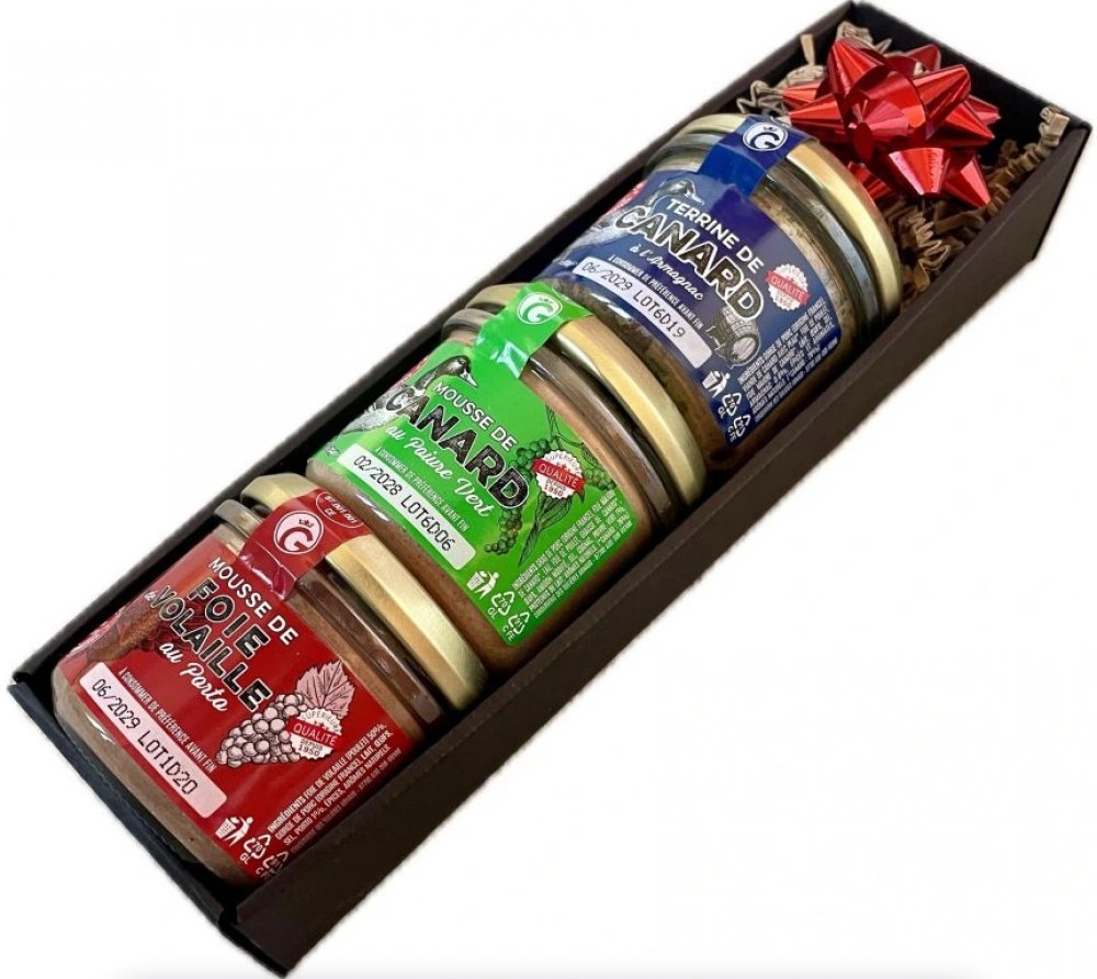 Složení: vepřové maso, kachna 28% (libová játra, maso, kůže, tuk), kuřecí játra, mléko, vejce, sůl, Armagnac 0,8%, koření, přírodní aroma.