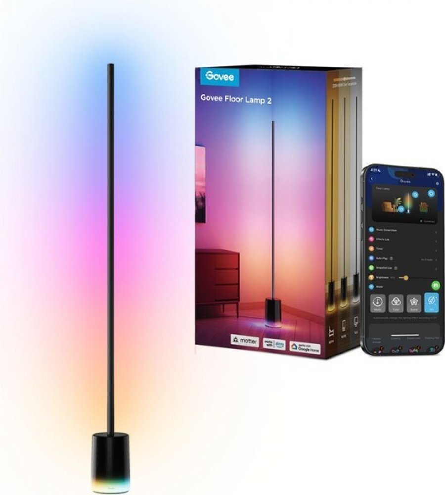 Govee Floor Lamp 2 RGBICWW Smart lampa - Matter Floor Lamp 2 je nová generace podlahových lamp od Govee. Novinka je minimalistická podlahová lampa, navržená, aby perfektně zapadla do jakéhokoliv interiéru. Jednoduše se hodí všude, protože je ve zhasnutém stavu velmi nenápadná. Vše se změní po aktivaci, kdy se probere jejích 1725 lumenů. Díky diodám s technologií 4 v 1 RGBICWW dosahuje světlo ohromující intenzity. K dispozici je přes 16 milionů barev nebo bílá laditelná od 2200 do 6500 K. Lampa měří téměř 1,52 metru, ale zabírá minimální prostor a lze ji tak umístit doslova kamkoliv. Nejvíce jí to však sluší v rohu, kdy osvítí maximální prostor za sebou a vykouzlí na vaše zdi úžasně plynulé barevné přechody. Životnost lampy je u Govee standardních 50.000 hodin. Ovládání je možné aplikací Govee Home, Google Home, pomocí asistentů Google, Apple i Amazon. Nově je k připojení nabízen i protokol MATTER, takže lampu lze používat s většinou současných smart home systémů. Pro maximální pohodlí v balení naleznete i klasický dálkový ovladač, který je kdykoliv v pohotovosti, připnutý přímo k lampě. Samozřejmostí jsou přednastavené scény, několik režimů synchronizace s hudbou a pokud si ani tak nevyberete, čeká na vás DIY režim, který vám dá 100% kontrolu při které je jediný limit vaše fantazie. Klíčové vlastnosti: Životnost až 50.000 hodin Protokol Matter pro snadnější integraci do smart home systémů Ovládání přes aplikaci Govee Home, ovládání hlasem – Siri, Google Assistant, Alexa RGBICWW - 16 milionů barev a laditelná bílá Vylepšený, moderní vzhled Světelnost 1725 lumenů Synchronizace s hudbou a 80+ přednastavených barevných scén Možnost časování zapnutí a vypnutí světla Minimální půdorys Jednoduchá instalace Určeno pro interiér Průměr základny 14 cm, výška 152 cm Futuristický design pro každý interiér Futuristický a moderní design. Nadčasový minimalistický design stojací lampy do obývacího pokoje, který vnáší do jakéhokoli interiéru sofistikovanost. Tělo světla s texturovaným, saténovým, hliníkovým povrchem a kompaktní, podsvětlenou základnou, pozvedne vzhled vaší domácnosti na novou úroveň. Perfektní světelný výkon Špičková technologie RGBICWW: Vychutnejte si barevné přechody 16 milionů barev, teplé i studené bílé odstíny v rozsahu 2200 K až 6500 K a jas 1725 lumenů. Připravte dokonalou atmosféru pro setkání, večírky nebo čtení. Dejte svému prostoru barvy a využijte ho na 100 %. Přednastavené režimy Přes 80 světelných scén a možnosti vizualizace hudby díky vestavěnému mikrofonu. Užijte si svátky, čas s rodinou a přáteli a překvapte je. Díky schopnostem aplikace můžete navíc další scény sami navrhovat. Chcete vytvořit působivý efekt? Není problém, aplikace vás přesně navede. Své výtvory můžete navíc sdílet v Govee komunitě. Snadná instalace Lampu složíte během několika minut díky přesným instrukcím rychlé příručky. Připojení přes Wi-Fi je otázkou vteřin. Nemusíte obětovat svůj drahý čas, vybalíte a svítíte! Technické parametry Připojení Wi-Fi, Bluetooth, MATTERAplikace Android a iOSSvětelný tok 1525 lumenů Barevnost – RGBICWWŽivotnost 50.000 hodin Zdroj napájení: Adaptér 24 VVýška 152 cm, půdorys 14 x 14 cmPříkon 36 WVstupní napětí 100-240 VNapájení síťovým adaptérem Obsah balení 1x Díly lampy1x Adaptér do sítě1x Dálkové ovládání s držákem1x Spojovací materiál a šroubovák.