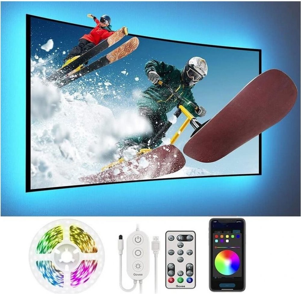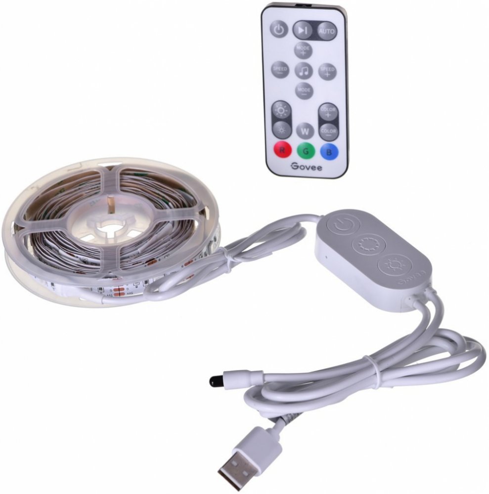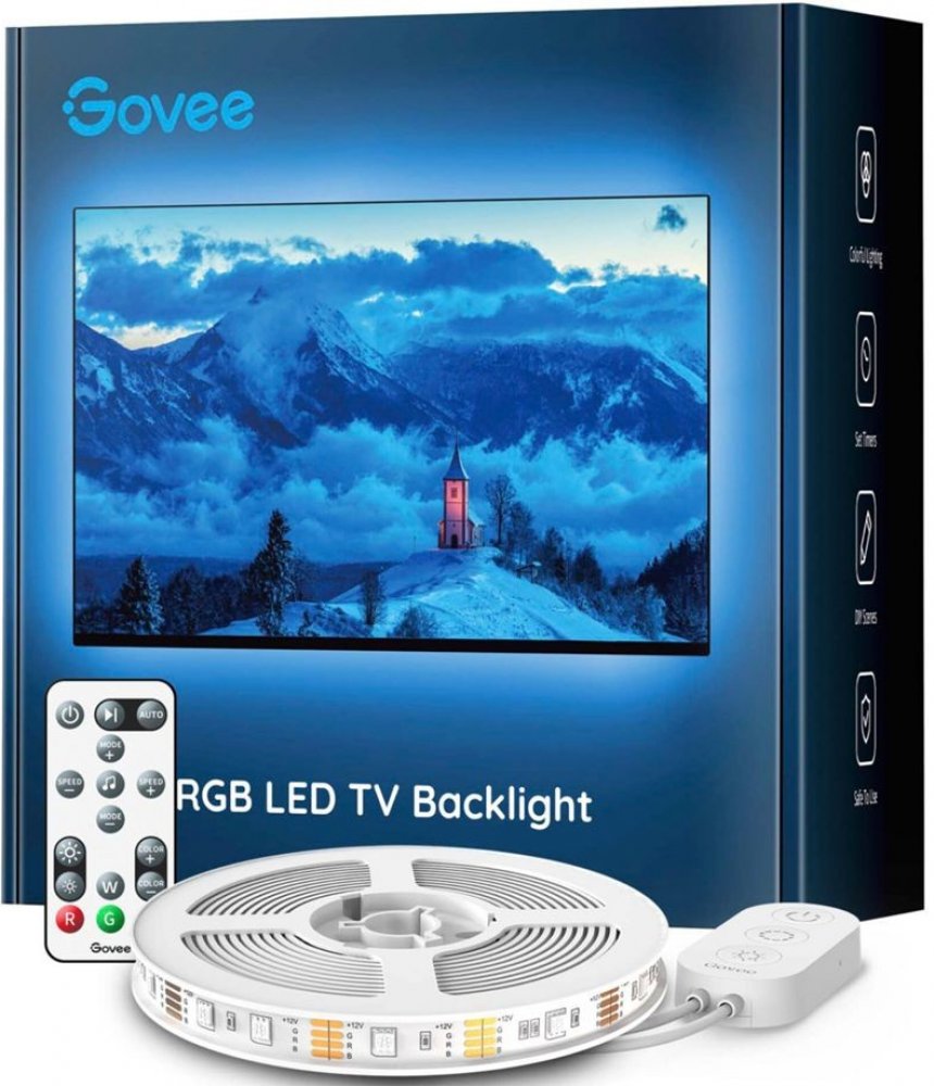 Govee TV 46-60" SMART LED Vylepšete své herní, filmové a hudební zážitky s živým chytrým osvětlením Govee TV 46-60 LED RGB s ovladačem. 16 milionů barev s více než 64 režimy efektů a synchronizace s hudbou povznese zážitek ze sledování televize nebo hraní her na novou úroveň. Ovládají se hlasem přes Siri, Amazon Alexa nebo Google Assistant nebo přes aplikaci Govee Home. Barevné podsvícení opticky zvětšuje obraz a také šetří vaše oči. Video: Hlavní vlastnosti: • Ovládání přes aplikaci Govee Home pro iOS a Android• 16 milionů barev a více než 64 režimů světelných efektů• Synchronizace světel s hudbou• Možnost rozdělit na více barevných sekcí • Instalace na zadní stranu TV a monitorů• Kompatibilní s úhlopříčkami 40-60 palců• 4 sekce – 2x 1m a 2x 0,5m Víc než 64 scénických režimů a synchronizace osvětlení s hudbou Aplikace Govee Home nabízí víc než 64 scénických a dynamických režimů na každou příležitost. Barevné kombinace si můžete nastavit podle svých preferencí, vkusu a vaší momentální nálady. Synchronizace s hudbou Díky vestavěnému mikrofonu se světelné pruhy hladce synchronizují s vaší hudbou nebo atmosférickými zvuky vydávanými z vašeho TV/PC při sledování filmů nebo hraní her. Chytrá aplikace Govee Home Spravujte nastavení barev a intenzity světla jednoduše pomocí aplikace Govee Home. Aplikace je zdarma ke stažení v Google Play a AppStore. Navíc získáte přístup k funkci časovače, DIY barvám, režimu videa, synchronizaci hudby a režimům scény. Instalace a kompatibilita LED pásky se instalují na zadní stranu TV nebo monitorů o velikosti 46-60 palců - není optimalizováno pro zakřivené televizory. V balení se nachází 4 pásky, které jsou spojeny flex páskami. 2 boční o délce 0,5m a 2 delší o délce 1m, které se instalují 3M páskami na zadní stranu TV nebo monitoru. Napájení probíhá přes USB nabíječku (není součástí balení). Technické parametry • Vstup: 110-240V• Zdroj napájení USB 5V/2A adaptér• Připojení Bluetooth• RGB• Délka: 2x 1m a 2x 0,5m• Světelný tok 150 lm/m • Celkový světelný tok 450 lumenů• Životnost 50.000 hodin• Příkon 10W Obsah balení • 1x LED pásek• Dálkový ovladač.