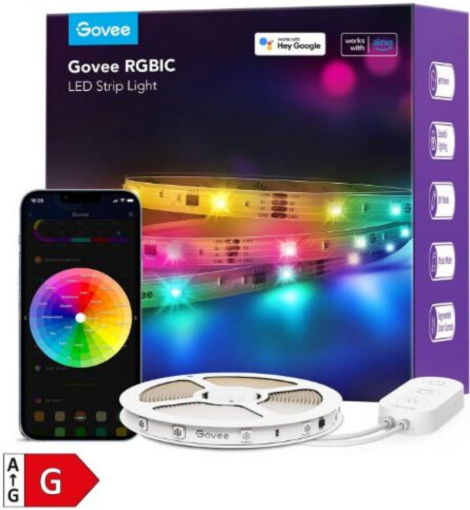 Ovládání přes aplikaci Govee Home Ovládání hlasem – Siri, Google Assistant, Alexa WiFi a Bluetooth připojení 16 milionů barev, 64 scénických režimů a DIY barvy RGBIC – možnost nastavení samostatné barvy pro vybrané sekce Synchronizace s hudbou přes integrovaný mikrofon a rytmické hudební režimy Časovač pro automatické vypínaní a zapínaní světel Energeticky úsporné s životností až 50.000 hodin Délka 10 metrů Vhodné do každé místnosti podle fantazie – schody, kuchyň, obývací pokoj, ložnice, dětský pokoj atd. Jednoduchá instalace pomocí 3M pásků Chytrá aplikace Govee Home pro iOS a Android a ovládání hlasem