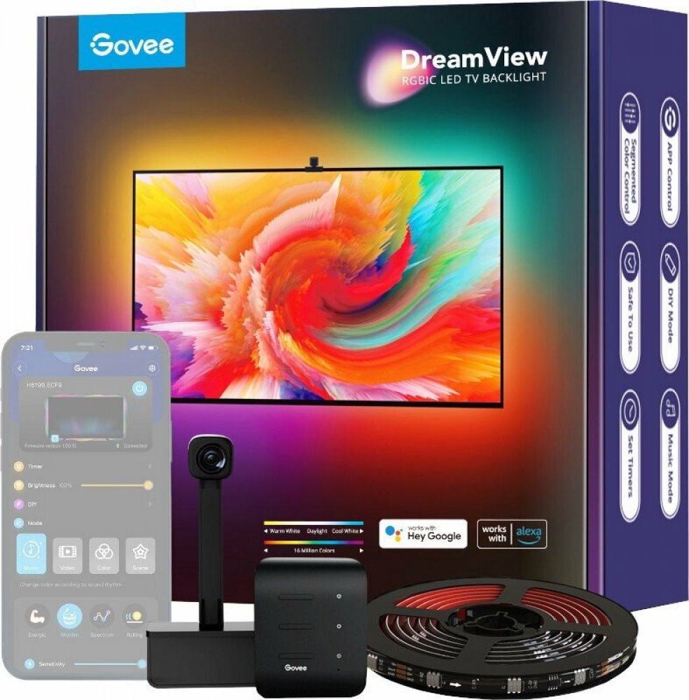 Vytvořte si ideální filmovou nebo herní atmosféru pomocí jednoduchých hlasových příkazů. Světla jsou kompatibilní s asistenty Alexa, Google Assistant a Siri. WiFi modul je zabudován v kameře, pouze kamera je připojena k ovládacímu boxu. Nyní můžete Govee DreamView zapnout/vypnout, upravit úrovně jasu nebo změnit jejich barvu pomocí hlasových příkazů z pohodlí své pohovky nebo postele. Ovládat světla je možné také přes ovládací jednotku Control Box nebo přes aplikaci ve smartphonu nebo tabletu.