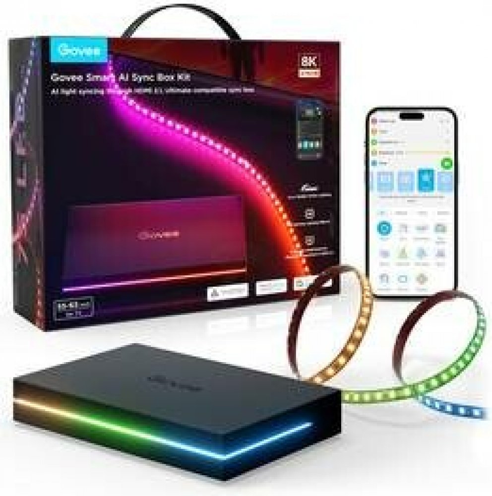 Govee AI Sync Box Kit 2 promění vaši domácnost v centrum dokonalého audiovizuálního zážitku díky pokročilé technologii poháněné umělou inteligencí. Navržen tak, aby se k němu mohlo připojit až 4 zařízení jako PC konzole a jiné zdroje HDMI signálu a kompatibilní s úhlopříčkami 55-65 palců, tento kit analyzuje HDMI signál a v reálném čase a promítá barvy přesně odpovídající dění na obrazovce. Díky světelným pásům RGBWIC si užijete precizní reprodukci barev a dynamickou odezvu, které vytvoří okolní atmosféru, jež přivede každý moment k životu.