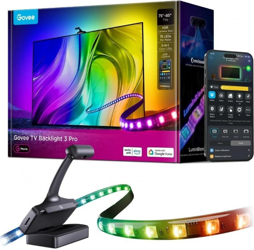 První na světě s trojitou HDR kamerou, Govee TV Backlight 3 Pro posouvá přesnost snímání na novou úroveň. Kamery sledují obraz z více úhlů, čímž dosahují detailnějšího a realističtějšího přenosu barev. Každý kout obrazovky je tak perfektně sladěný s okolním osvětlením.