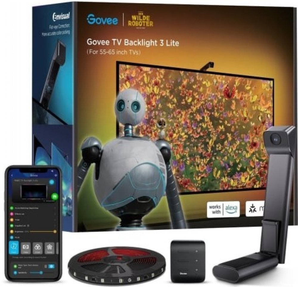 Govee přichází se zcela novou koncepcí ambientního TV osvětlení. Govee TV Backlight 3 Lite, kompletní řešení pro scénické osvětlení zdi za televizní obrazovkou, které vás doslova vtáhne do děje. Díky diodám s technologií 4 v 1 RGBICW a hustotou 30 diod na 1 metr pásku, dosahuje světlo ohromující intenzity. Řešení je s celkovou délkou pásku 2,4 m určeno převážně pro televizory s