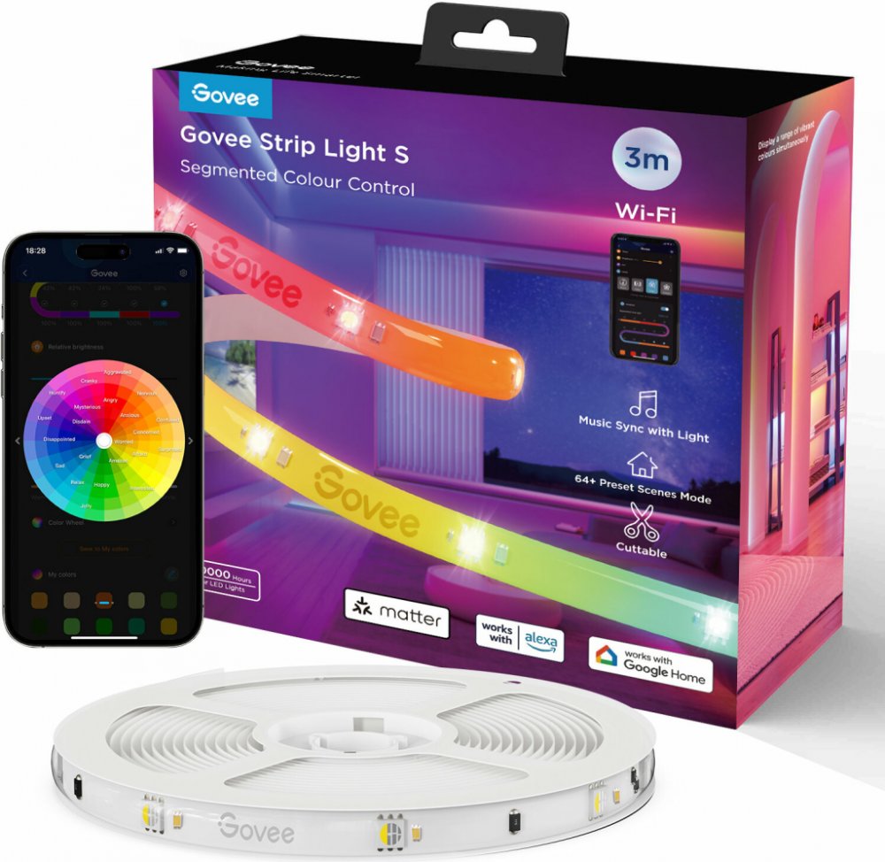 LED pásek Govee WiFi RGBICW Smart PRO, 3 mBarvy jednoznačně ovlivňují náš život a psychiku. Vyvolávají v nás různé emoce a nálady. Mohou mít uklidňující nebo stimulující účinek, podporovat koncentraci nebo přispívat k naší lidské orientaci. Každá barva působí jinak, protože každý odstín má svou vlnovou délku a energii, která se přenáší do našeho těla, našeho myšlení, pocitů a jednání. Oživte svůj domov kompozicí barev a přizpůsobte jej své jedinečnosti s originálními LED páskami Govee RGBICW Smart PRO. Nová generace úsporných a odolných LED pásků Govee s životností až 20.000 hodin dělají z vašeho domu designový skvost. Ať už to bude obývák, ložnice nebo třeba herní počítačové místo vaše teenagera, s LED páskami vykouzlíte dokonalou barevnou atmosféru. Oproti staré generaci jsou pásky střihatelné a nově podporují protokol Matter, takže je lze integrovat i do jiných smarthome systémů. Pásky fungují s technologií RGBICW, zobrazují až 16 milionů barev, jejichž...