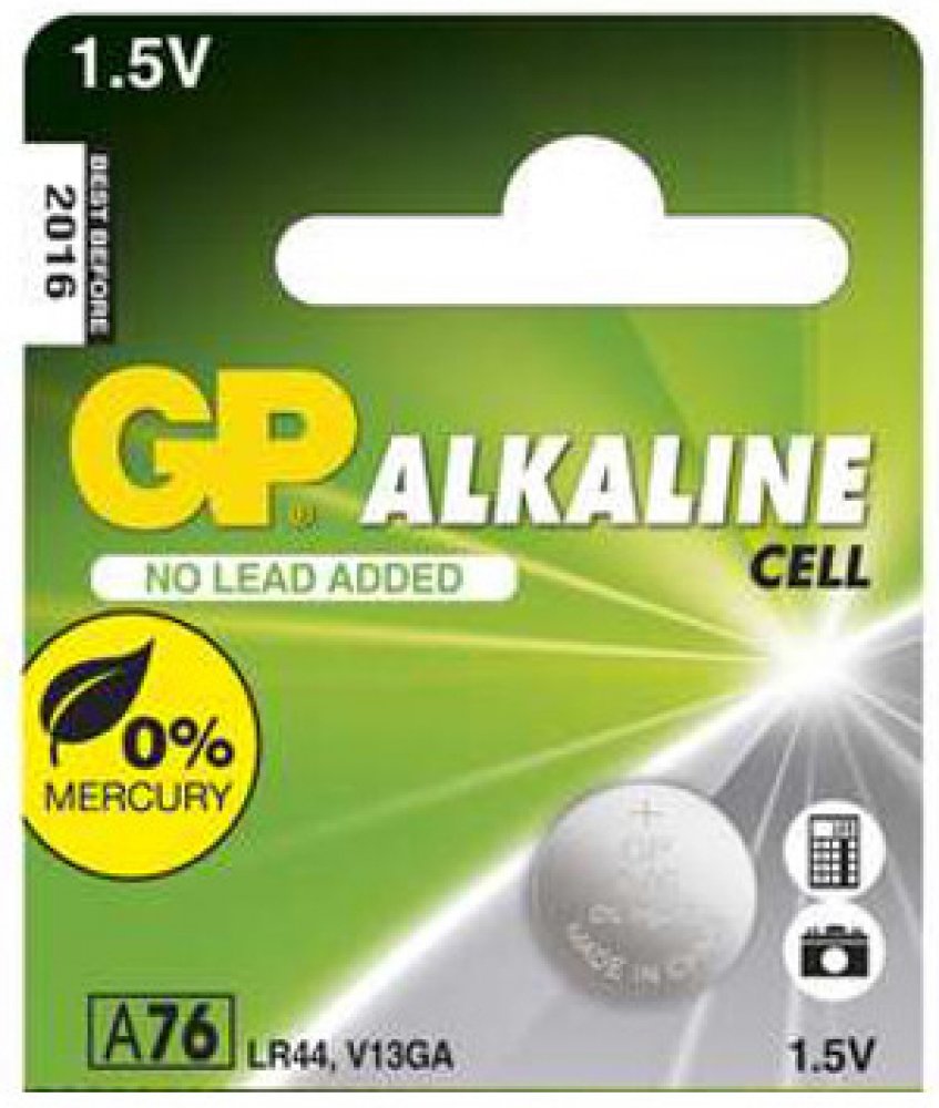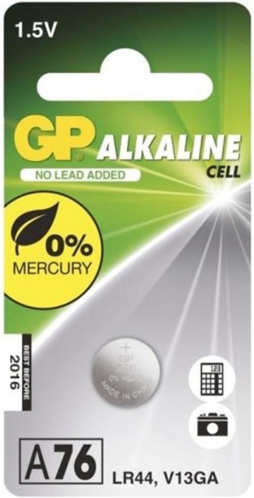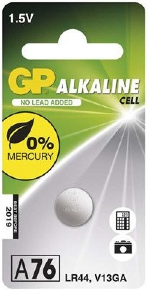 - typové označení: GP A76F (AG13, LR44, LR1154, V13GA, PX76A)