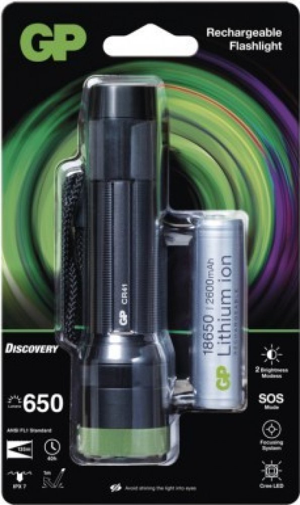 GP CREE LED nabíjecí ruční svítilna Discovery CR41 P8511, 650 lm, černá