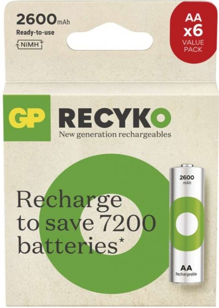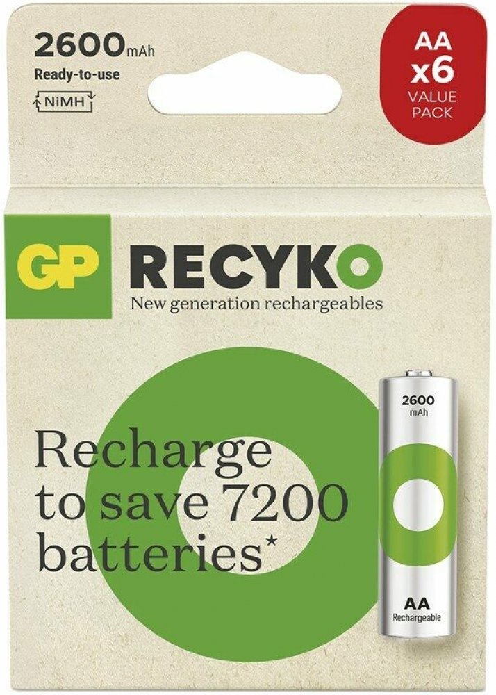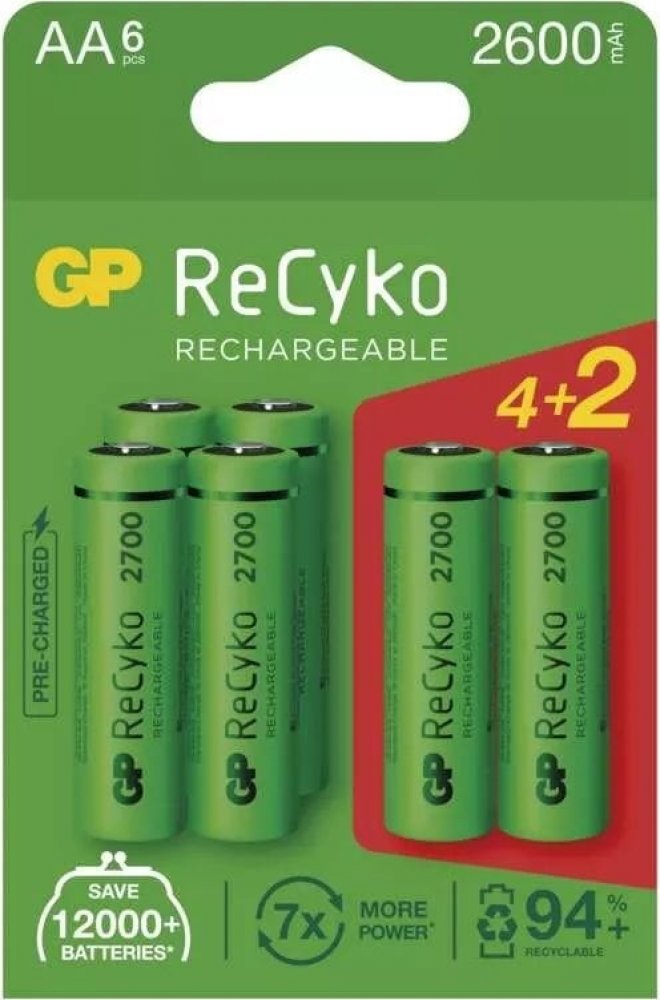 Řada nabíjecích baterií Recyko vám přináší výjimečné vlastnosti, které vás ohromí. S dlouhým životním cyklem a zaručenou životností 6 let nebo 500 nabití vám poskytne spolehlivou energii po extrémně dlouhou dobu. Tyto baterie jsou navrženy tak, aby vám přinesly dlouhotrvající výkon a nezklamaly vás v žádném smyslu. S jejich nadstandardní životností se nemusíte starat o častou výměnu baterií. Využijte je pro širokou škálu zařízení a užívejte si bezstarostného používání bez obav o výdrž energie. Nová řada baterií GP Recyko nabízí širokou škálu všech velikostí, včetně AA, AAA, C, D a 9 V, takže jsou vhodné pro všechny druhy elektronických přístrojů, které potřebují baterie.
