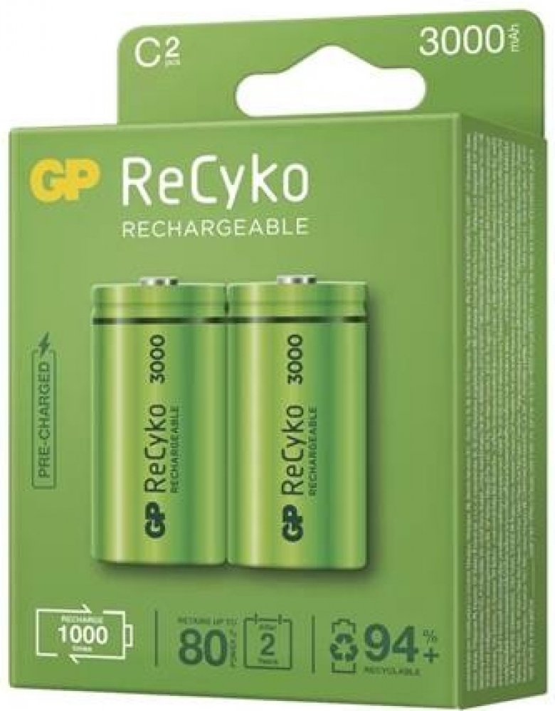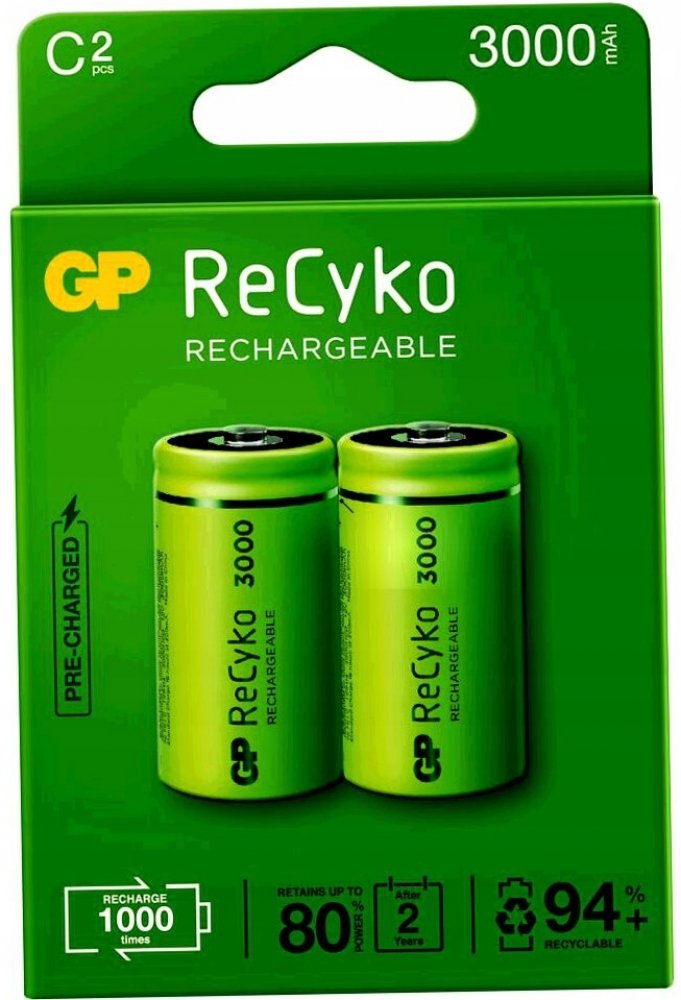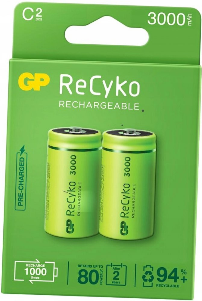 Baterie C (R14) nabíjecí 1,2V/3000mAh GP Recyko 2ks