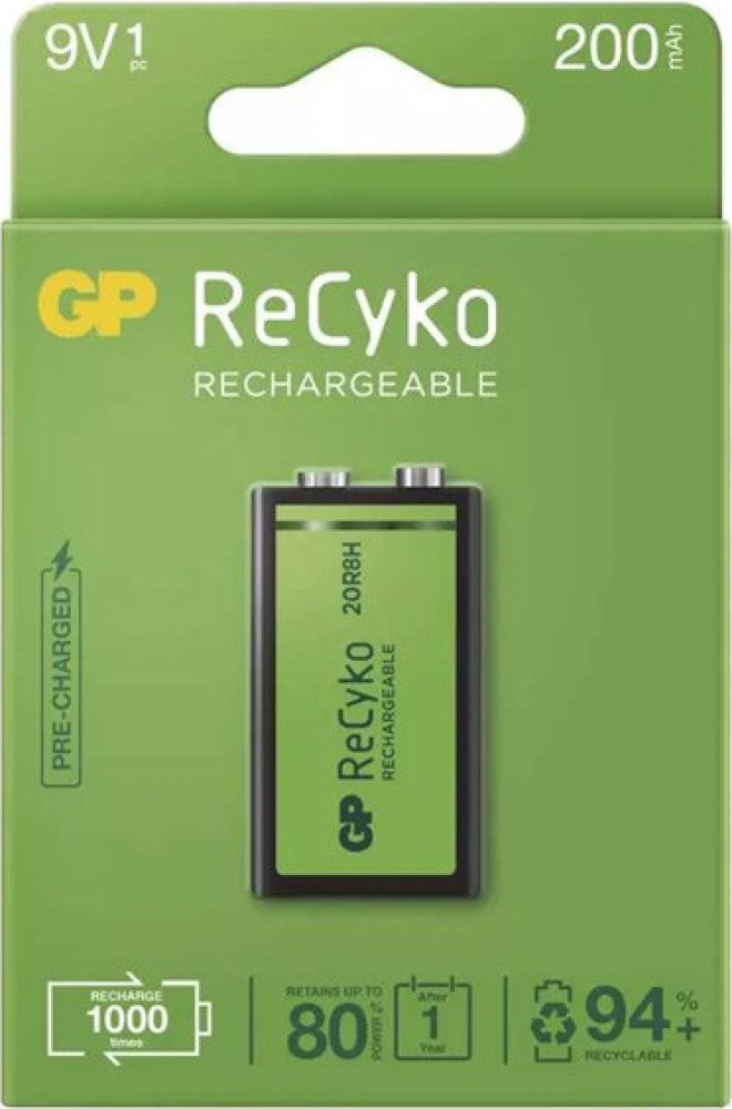 nabíjecí baterie • 6F22 9 V (1604) • minimální kapacita 200 mAh • napětí 8,4 V • nepodléhá efektu samovybíjení • výdrž minimálně 500 nabíjecích cyklů